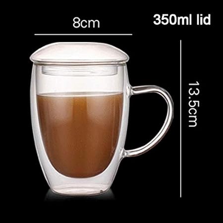 Gelentea Resistenti alle Alte Temperature per caffè con Manico Bicchieri isolati a Doppia Parete Latte 260ml con Coperchio Succo di Frutta Spessi tè Trasparenti