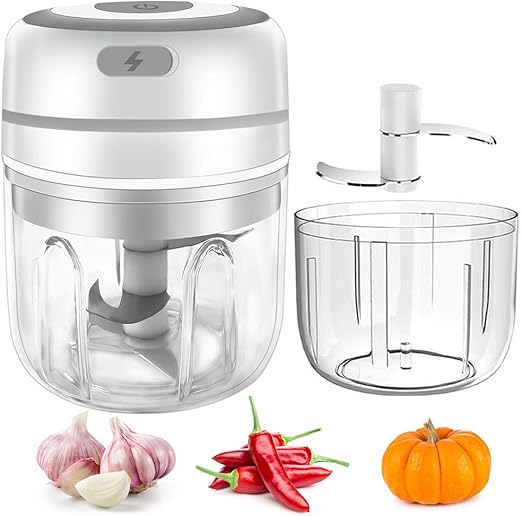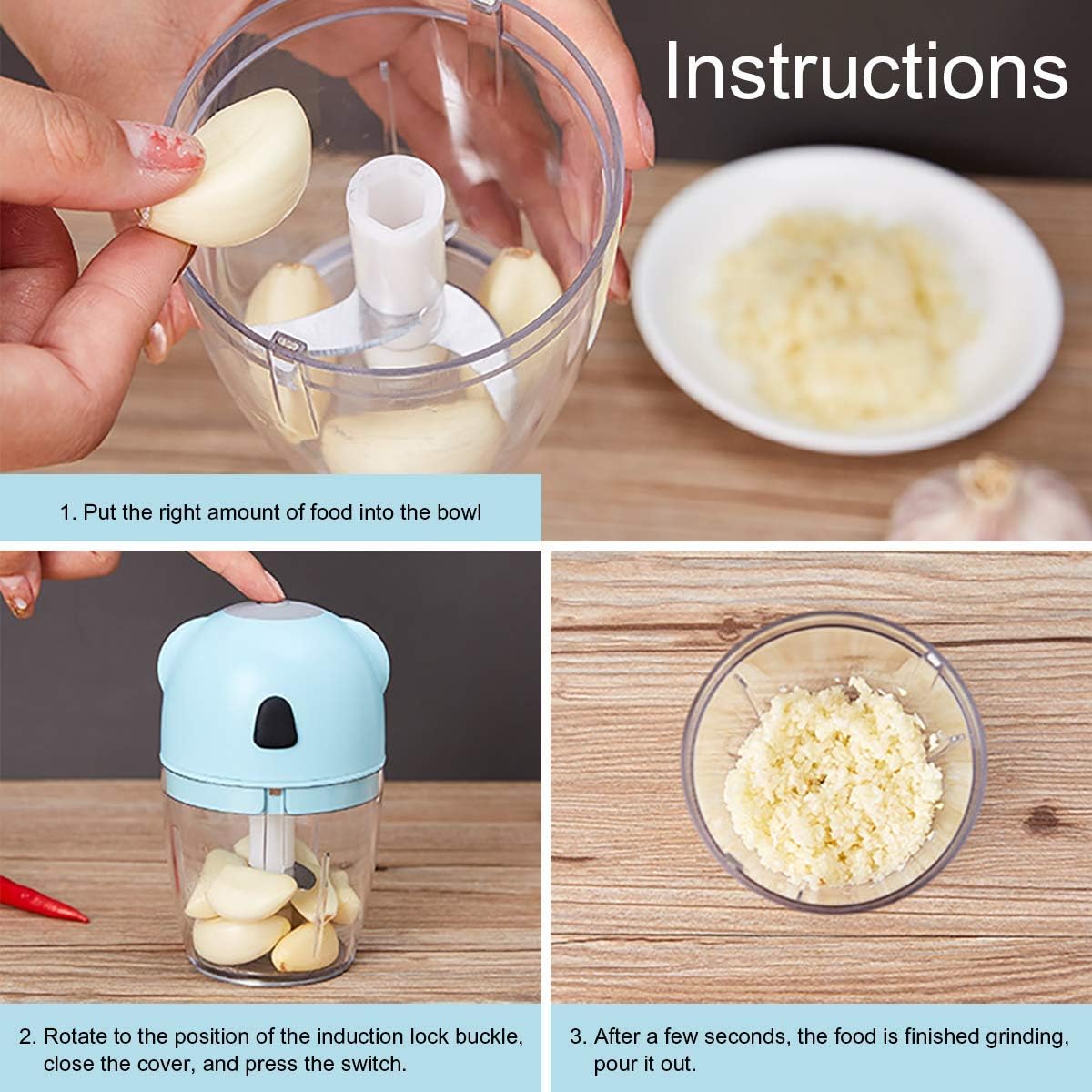 Aglio Alimenti Per Bambini Con Sistema A 4 Pale,Miscelatore Per Pepe Mini Tritatutto Elettrico,260ML USB Ricaricare Tritaverdure,Frullatore Per Aglio Compatto E Potente Carne Macinata Dado