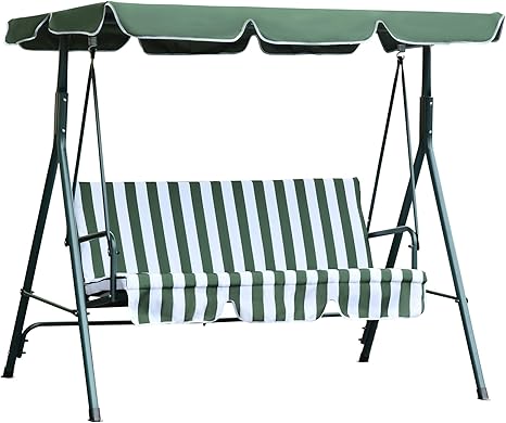 Strisce Verde e Bianco Outsunny Dondolo 3 Posti con Tettuccio Struttura in Acciaio Fino 200 kg 170x110x153cm