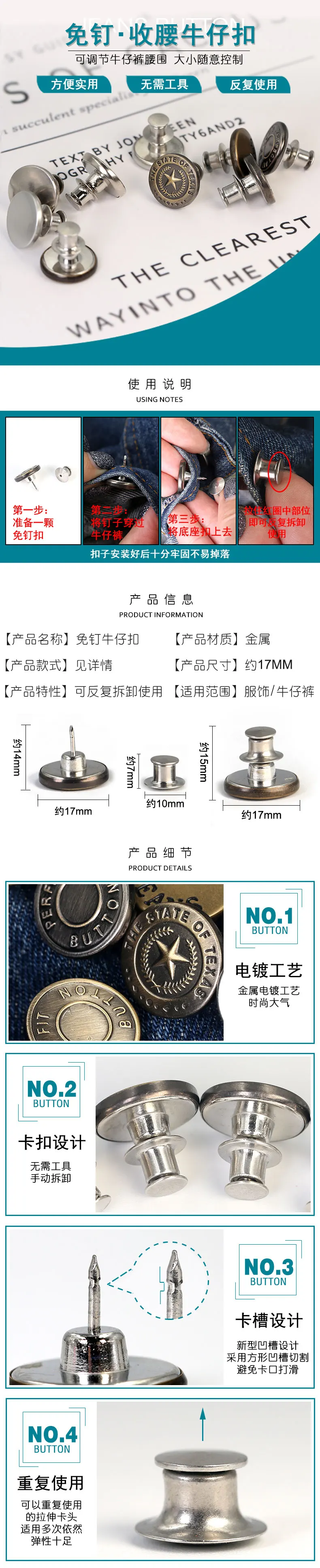 Bottone Staccabile Jean Bottoni Jeans Con Rivetti Bottone Per Riparazione Abbigliamento Nessun Pulsante Di Cucitura Metallo Bottone Jeans Senza Unghie Decorazione Riparazione Pantaloni Jeans Abiti 10