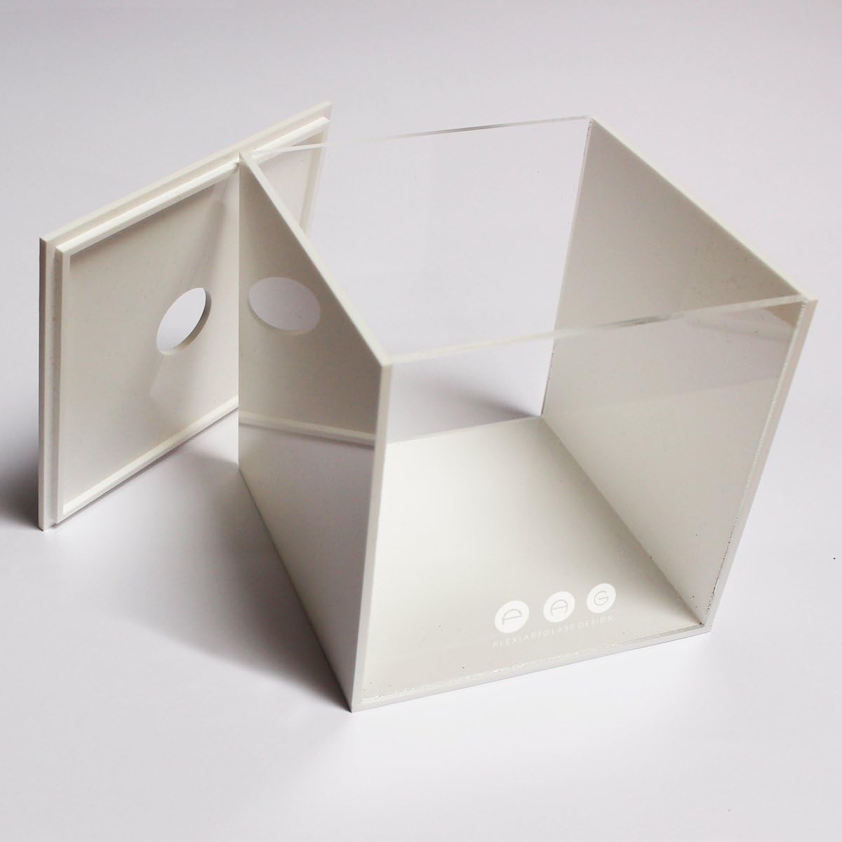 Portacapsule cubo CON COPERCHIO bianco in Plexiglass MADE IN ITALY 14 cm