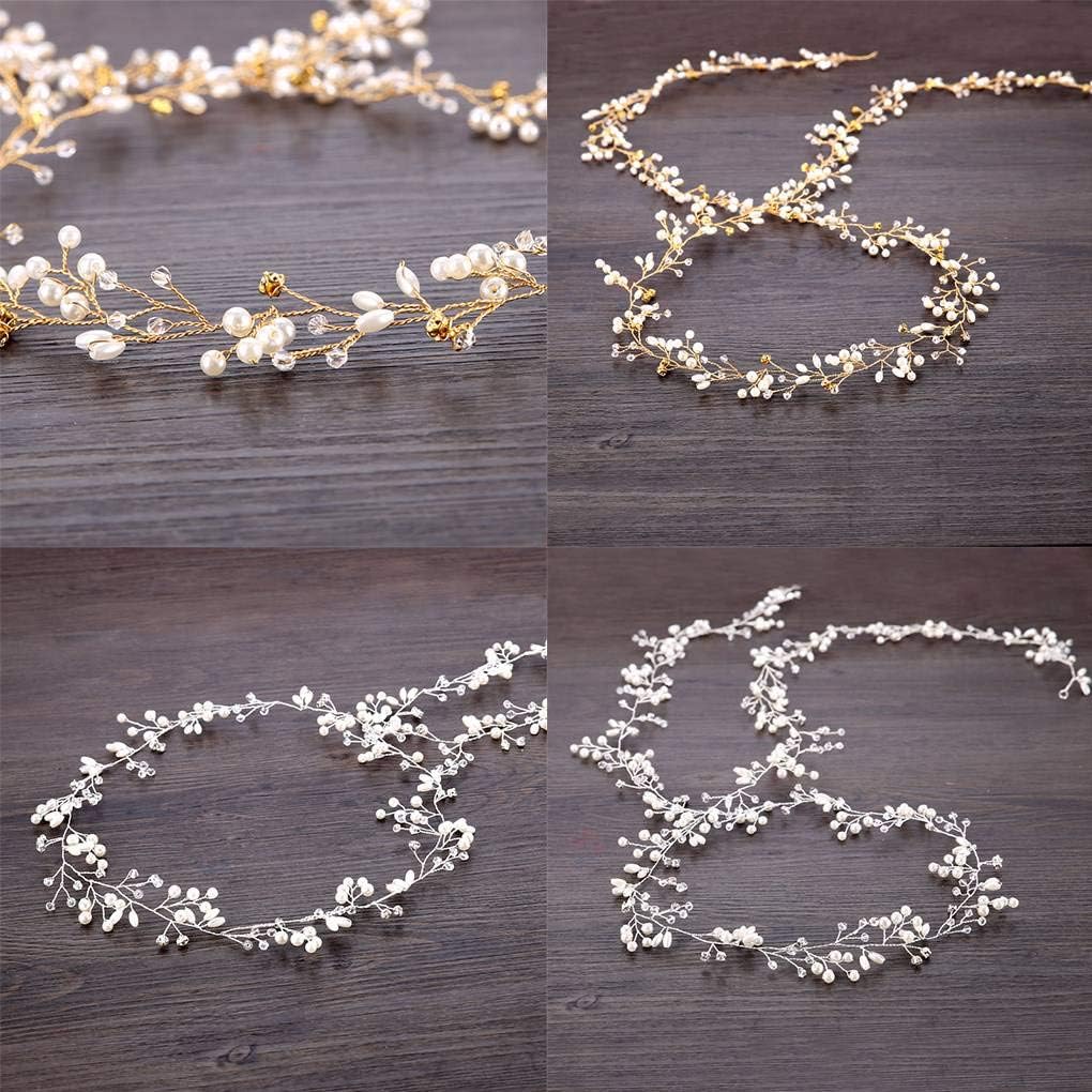 Busirde Accessori per Capelli Perla delle Donne Floreali Fasce Sposa Capelli della Fascia di Hairwear dei monili di Cerimonia Fascia Copricapo da Sposa Argento 50cm