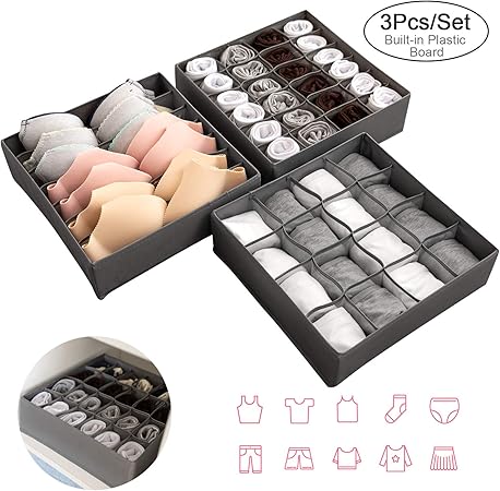 SONGMICS Divisore per Cassetti Grigio Scuro RUS04GY Portabiancheria Pieghevole per Slip Calzini Reggiseni Cravatte Organizza Il Guardaroba Set di 4