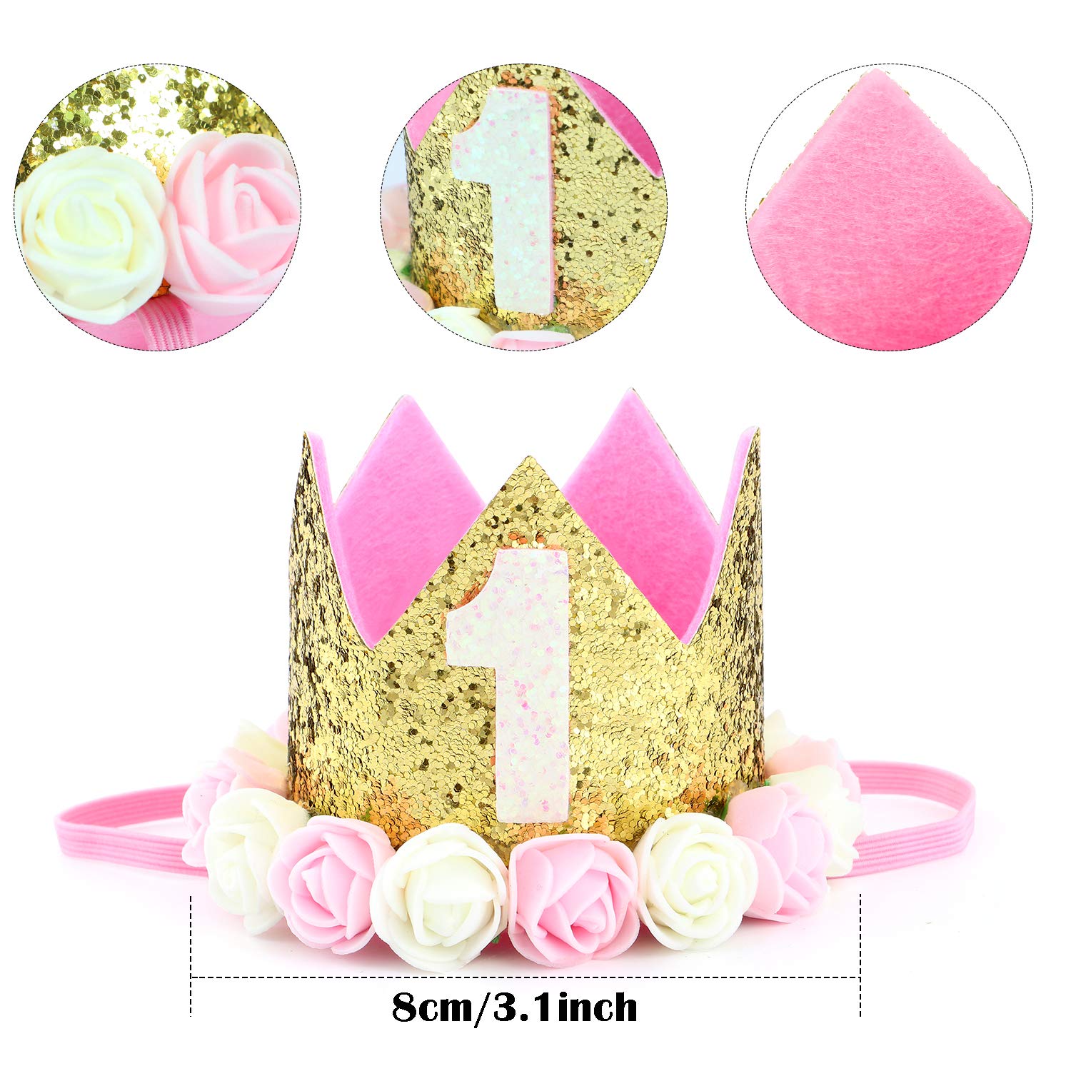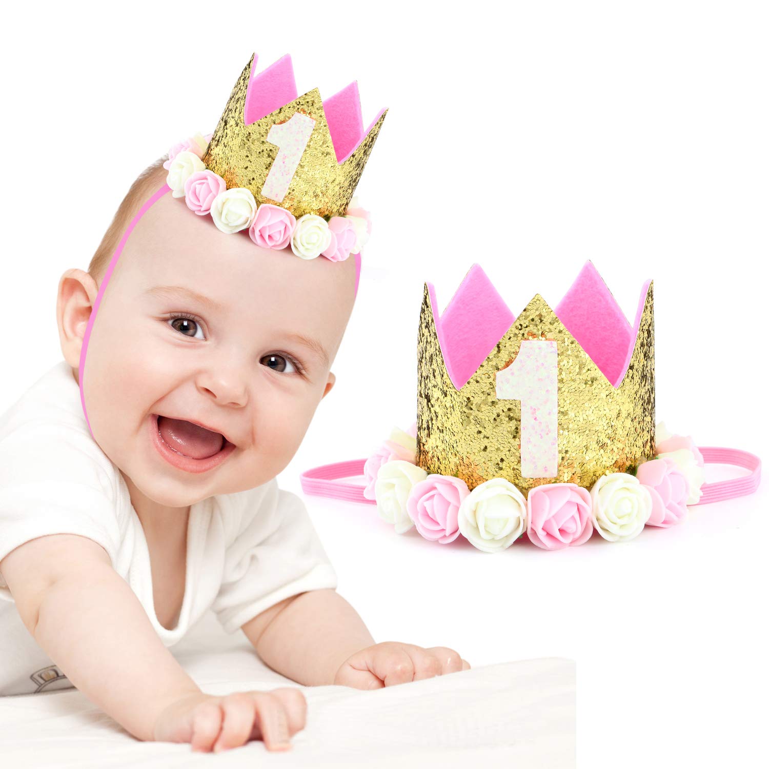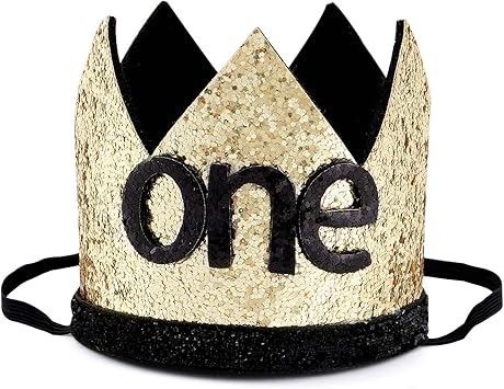 Tacobear Corona Primo Compleanno Bambini 1 Anno Glitter Corona Fascia per Compleanno del Ragazzo Ragazza Corona Festa di Compleanno Corona 1st Birthday Oro + Nero One