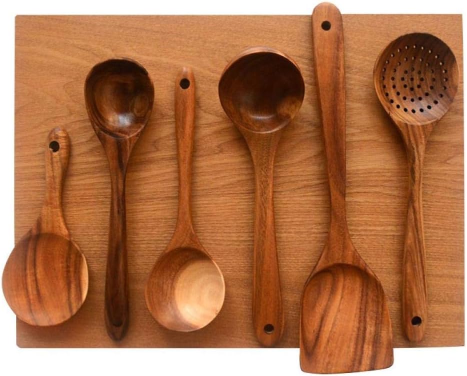 qianqiu Cucchiaio da Cucina in Legno per Uso Domestico Colino da Cucina in Legno Set di Pala da Cucina Cucchiaio da Cucina in Legno 25,5 6 Cm