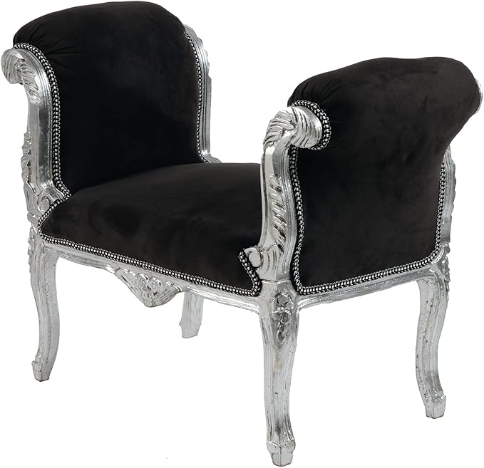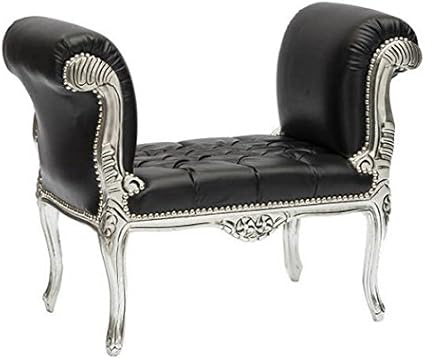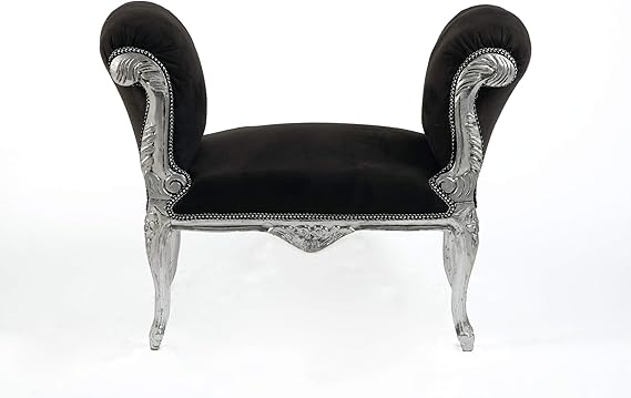 Way Home Store Divanetto panchetta Barocco Stile Francese Luigi XVI Argento e Nero