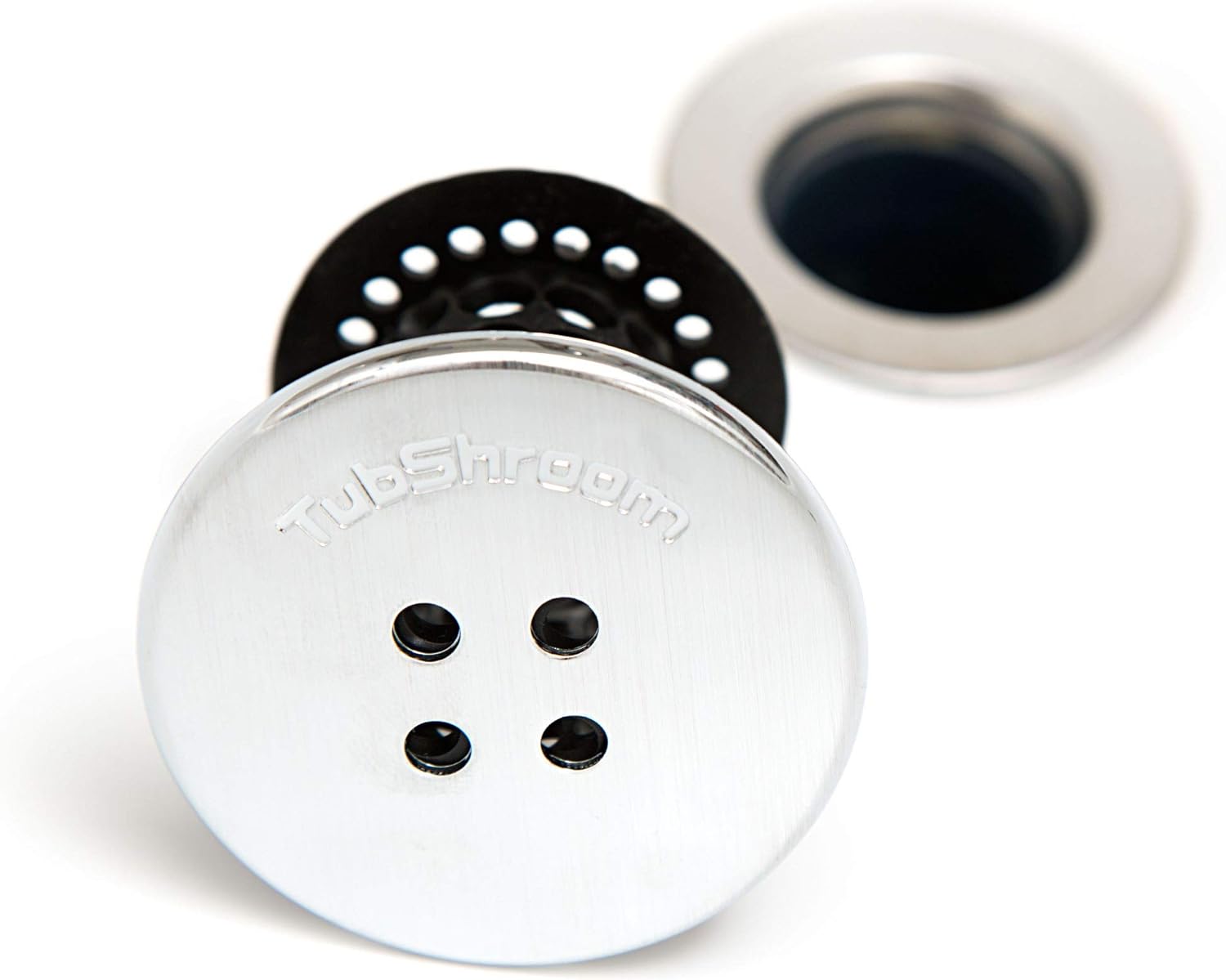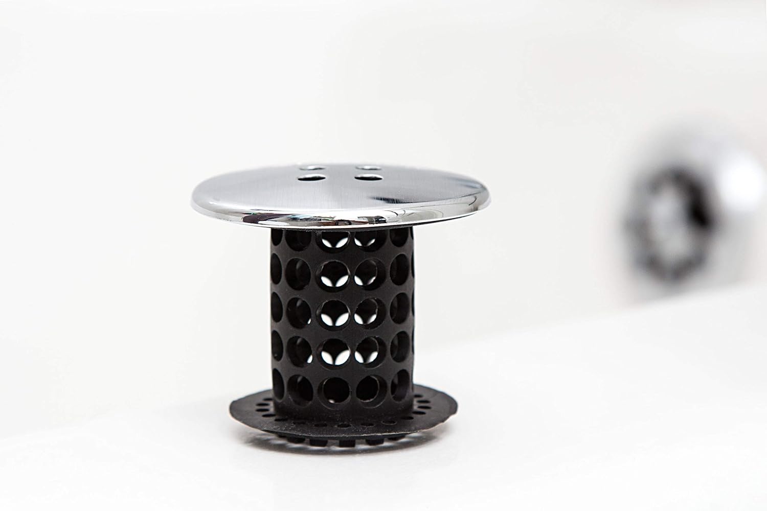 Snare Strainer TubShroom Edition Revolutionary Tub Drain Protector Hair Catcher Black Chrome