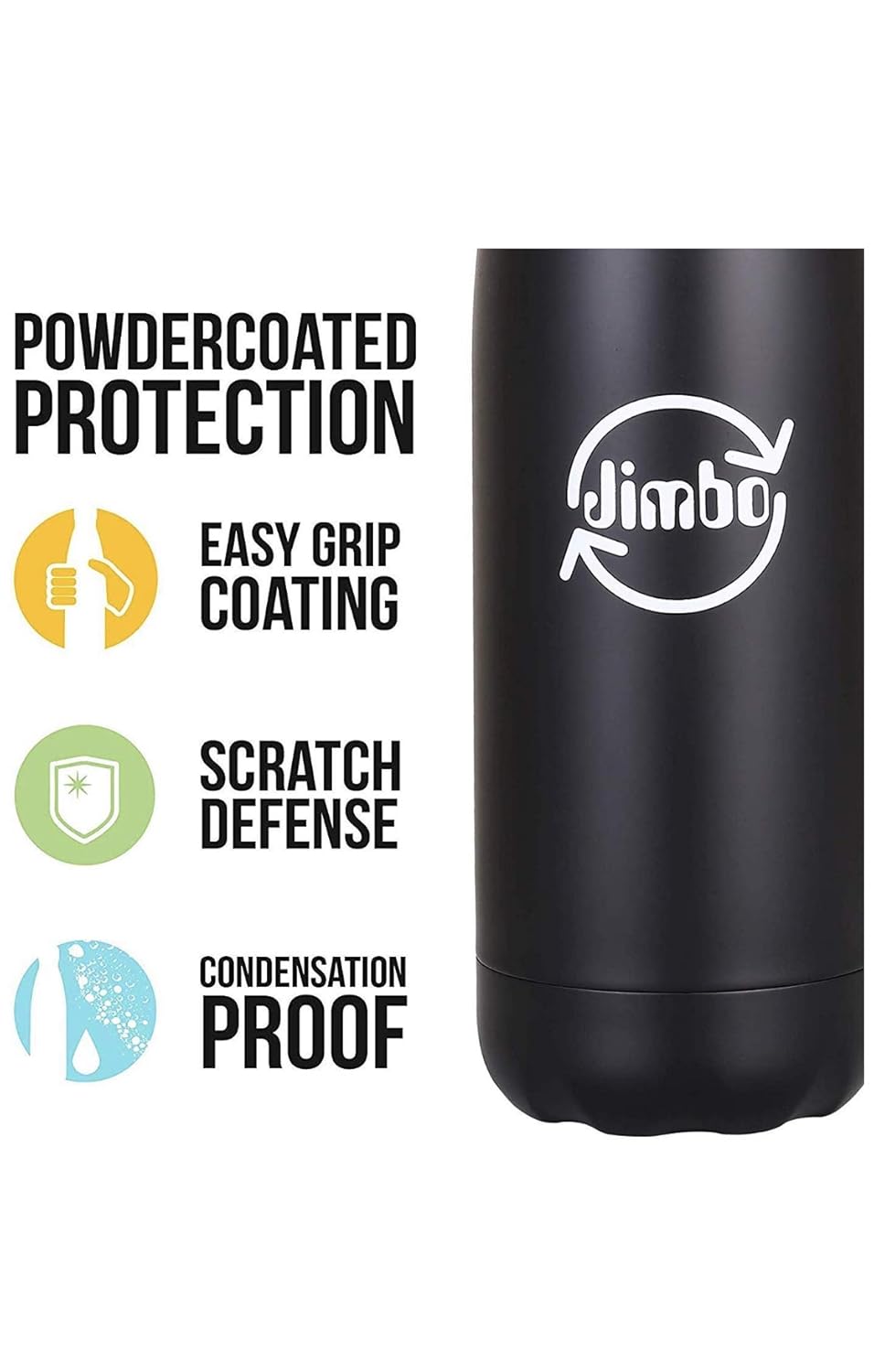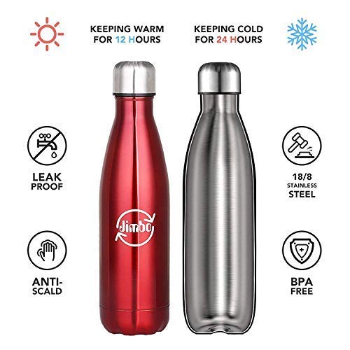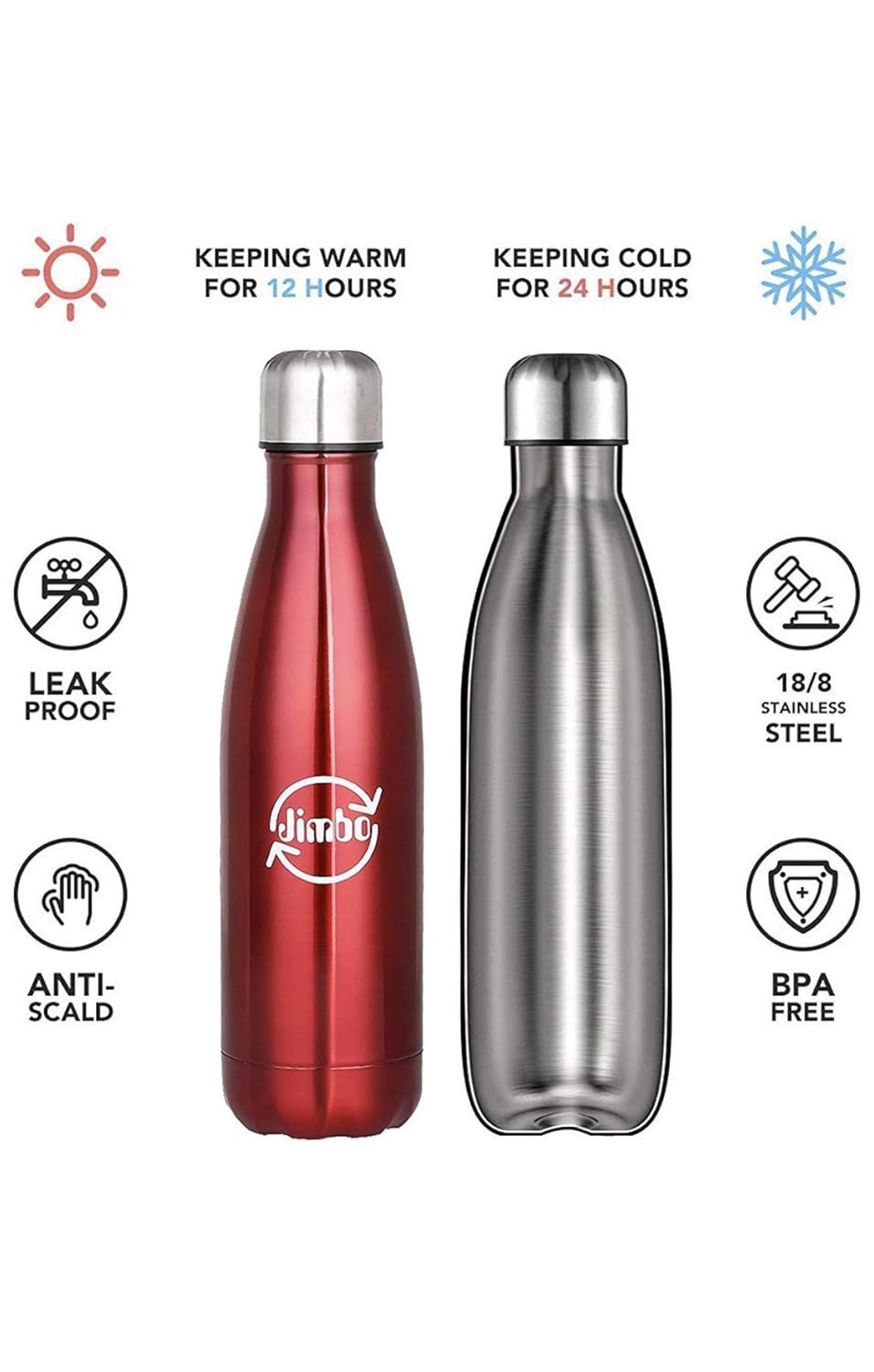 JIMBO Thermos Caffe,Acqua Fredda,Borraccia,Doppia Parete,da Viaggio,Hydration,Sportivo,Trekking,Ufficio,Viaggio,Water Bottle,Termica,Palestra,Bici,Acciaio Inox,Calcio,Fitness,Escursionismo Bianco