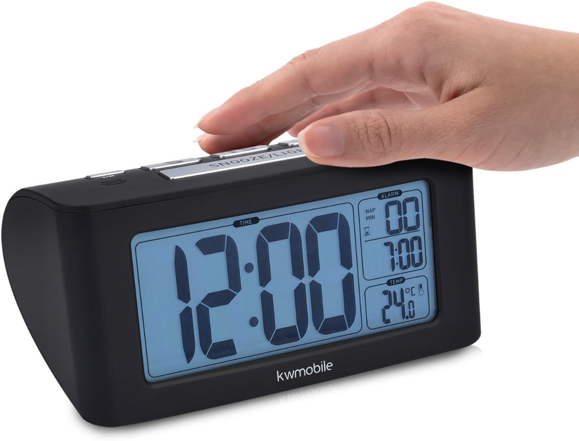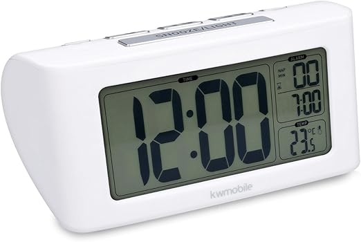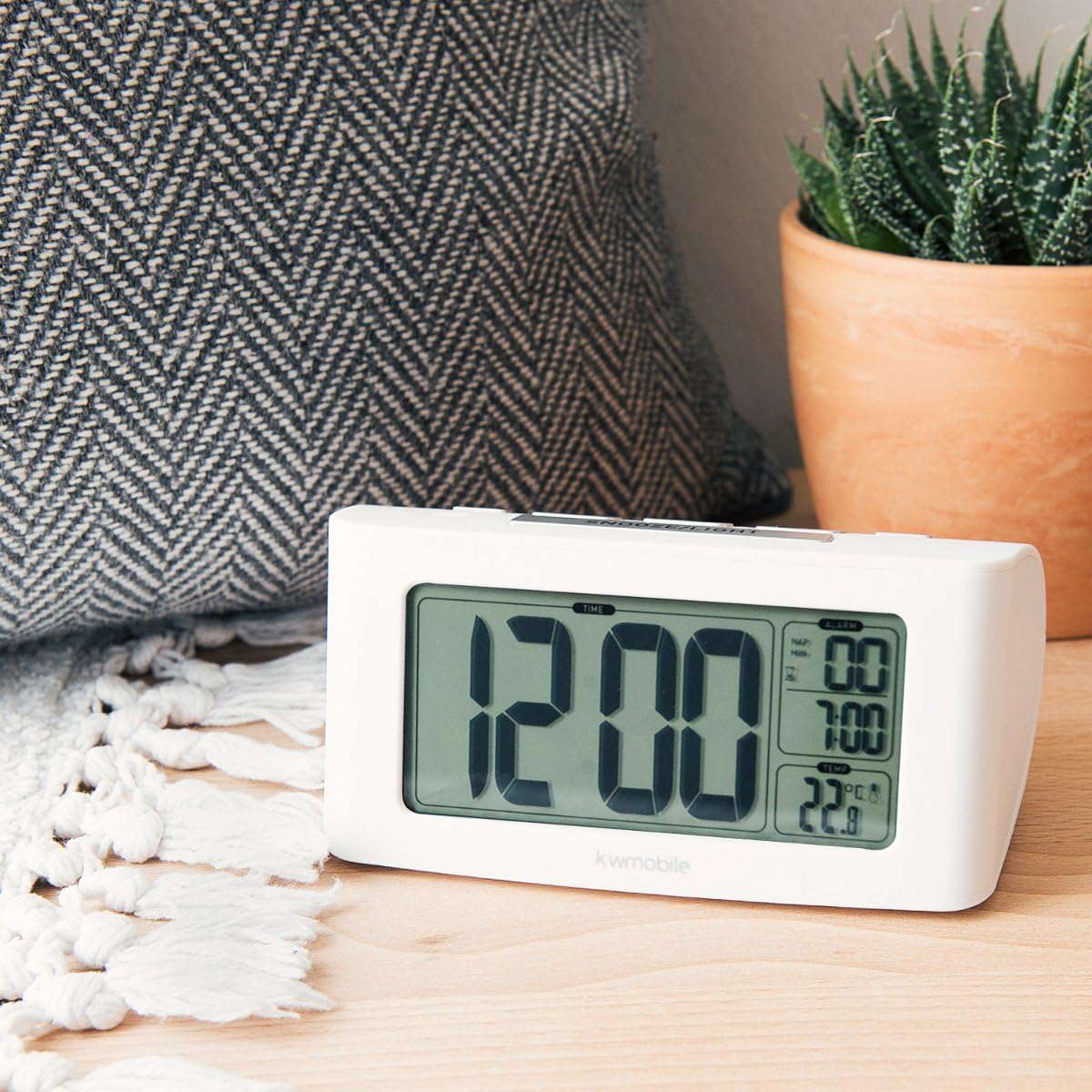Bianco Grande Display LCD con Temperatura Orologio da Comodino con Funzione Power Nap e Snooze kwmobile Sveglia Digitale a Batteria