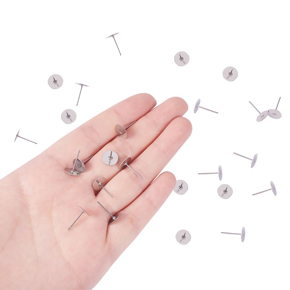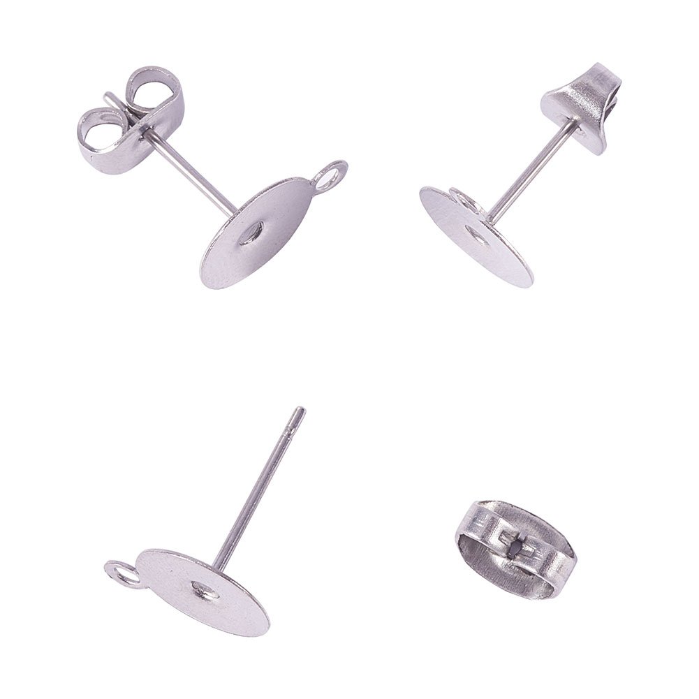 PandaHall Elite 50PCS Orecchini in Acciaio Inox 304 Forma Piatto Basi Orecchini Borchie Componenti Leva Indietro Orecchino 12x8x8mm