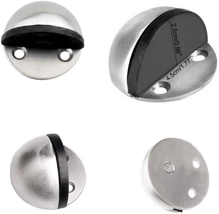 Ferma Porta da Pavimento Fermaporta Adesivo in Acciaio 4 Pezzi Fermaporta a Pavimento Adesivo Inox Fermaporte Porte Protezione in Gomma con Viti e Adesivo per Casa Ufficio Finestra