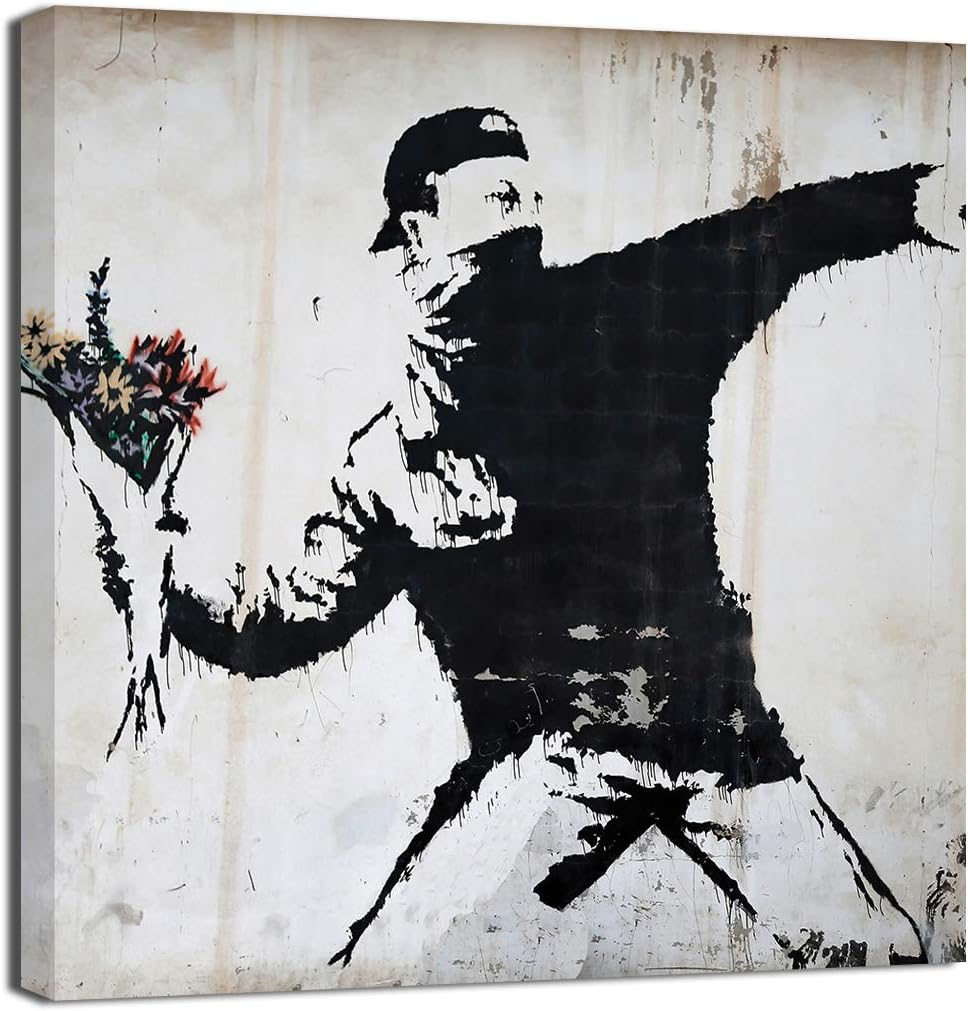 Quadri Moderni Banksy 4 Pezzi cm 40x40 cad Street Art Stampa su Tela XXL Arredo casa Soggiorno