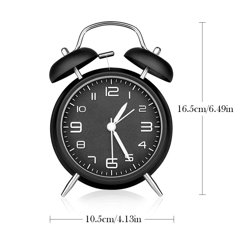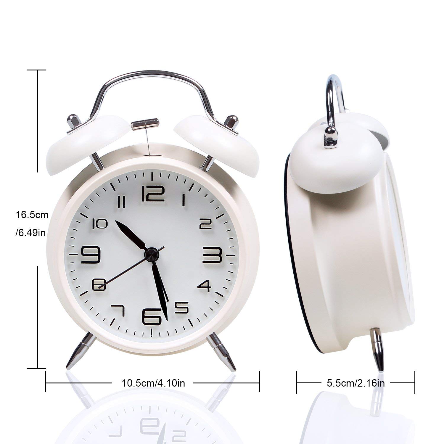 4 Pollici Grande Quadrante per Sleepers Leggeri e Pesanti Senza ticchettio bianco a Doppia Campana Classico Sveglia da Comodino Stile Vintage RUXI Sveglia a Doppia Campana meccanismo al Quarzo