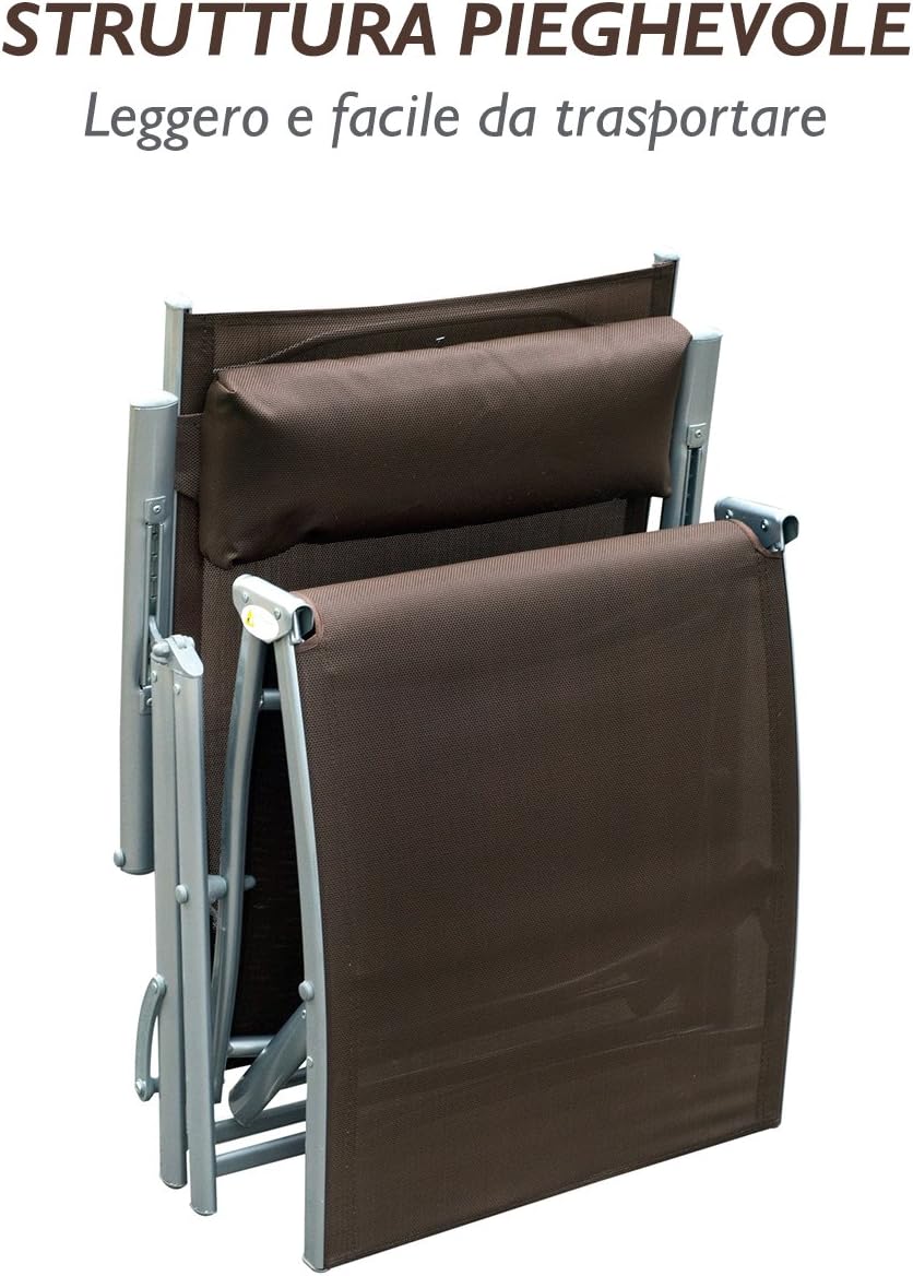 Outsunny Sdraio Prendisole Relax Reclinabile Pieghevole Giardino Esterno 137 × 63.5 × 100.5cm Marrone