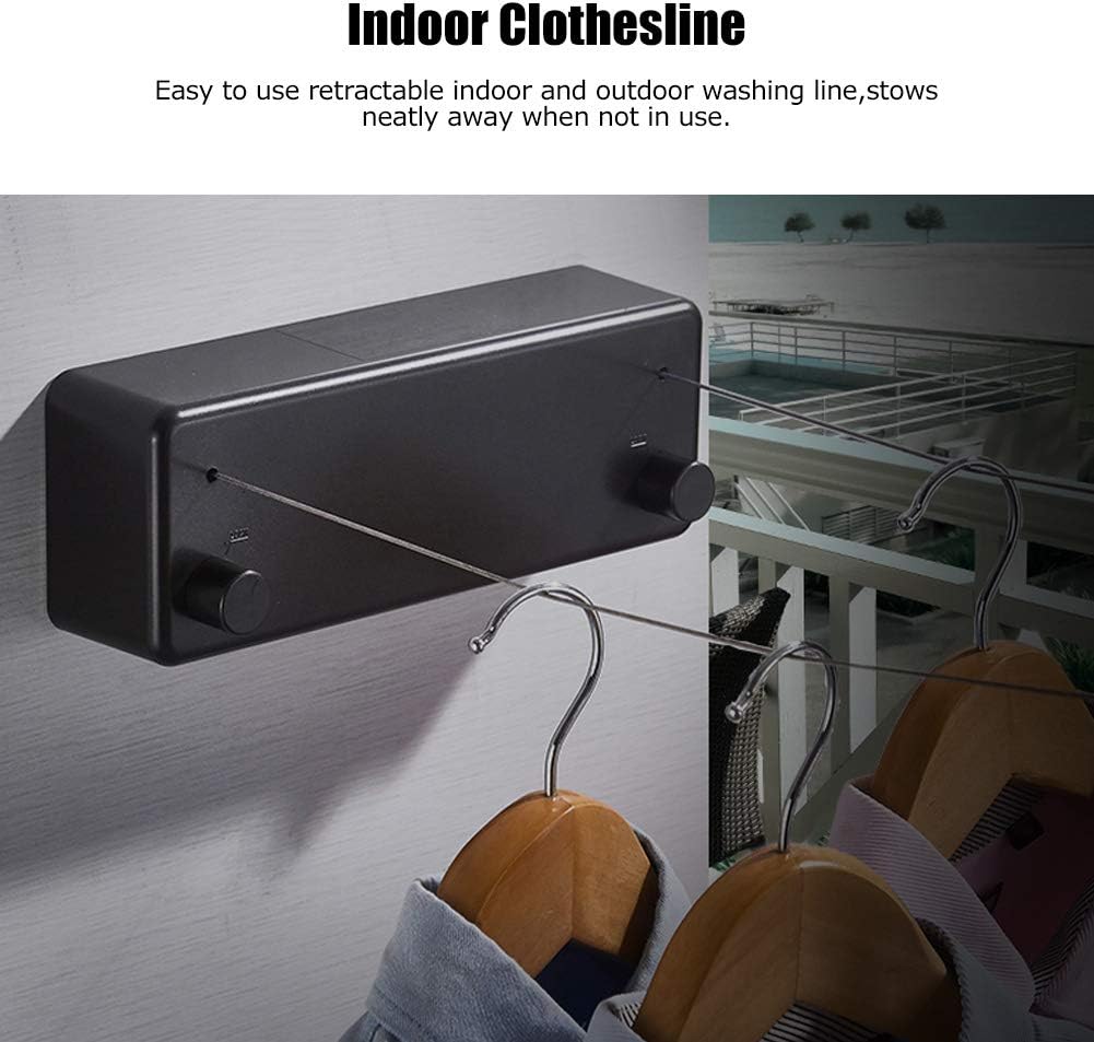 Cocoarm Stendibiancheria Stendibiancheria Retrattile ed estendibile Stendibiancheria Retrattile a Scomparsa sul Muro Stendibiancheria Asciugatrice per Interni ed Esterni Nero