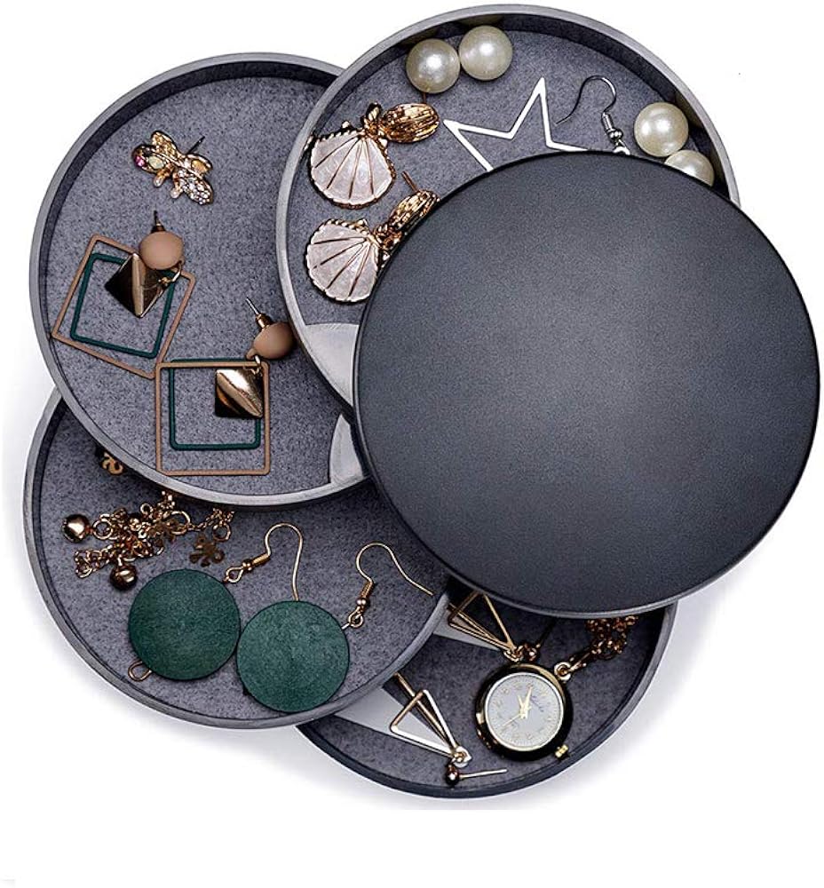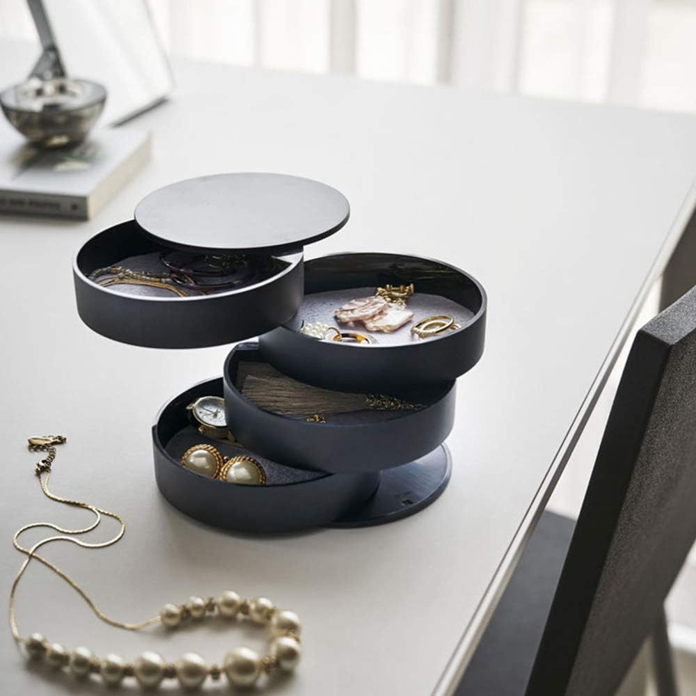 Ragazze DXIA Portagioie Scatola Donna Viaggio Scatola Porta Gioielli 4 Strati Jewellery Organizer Rotante a 360 ° per Anelli Orecchini Collane Bracciali