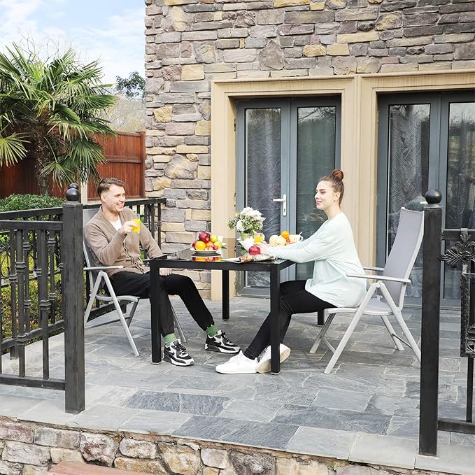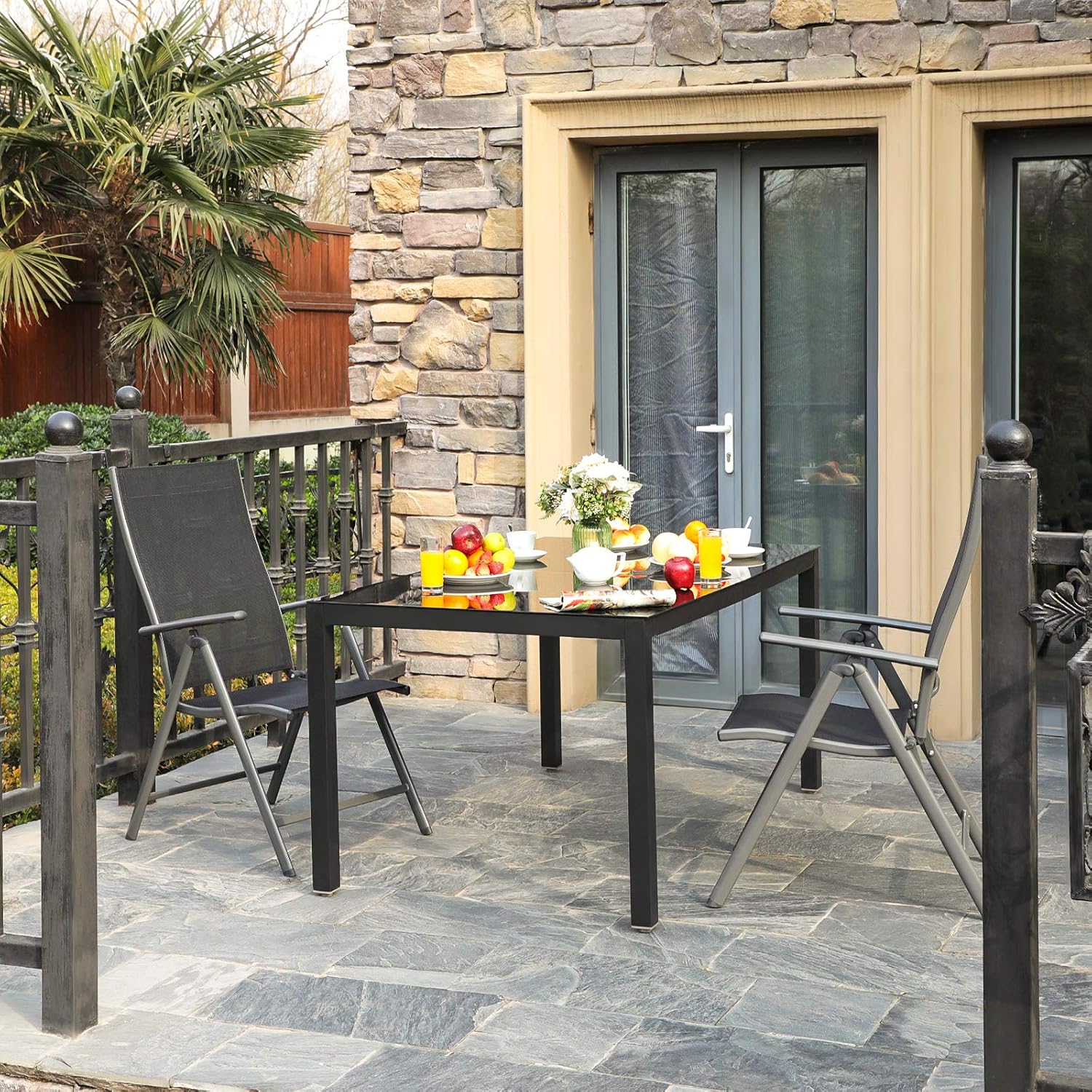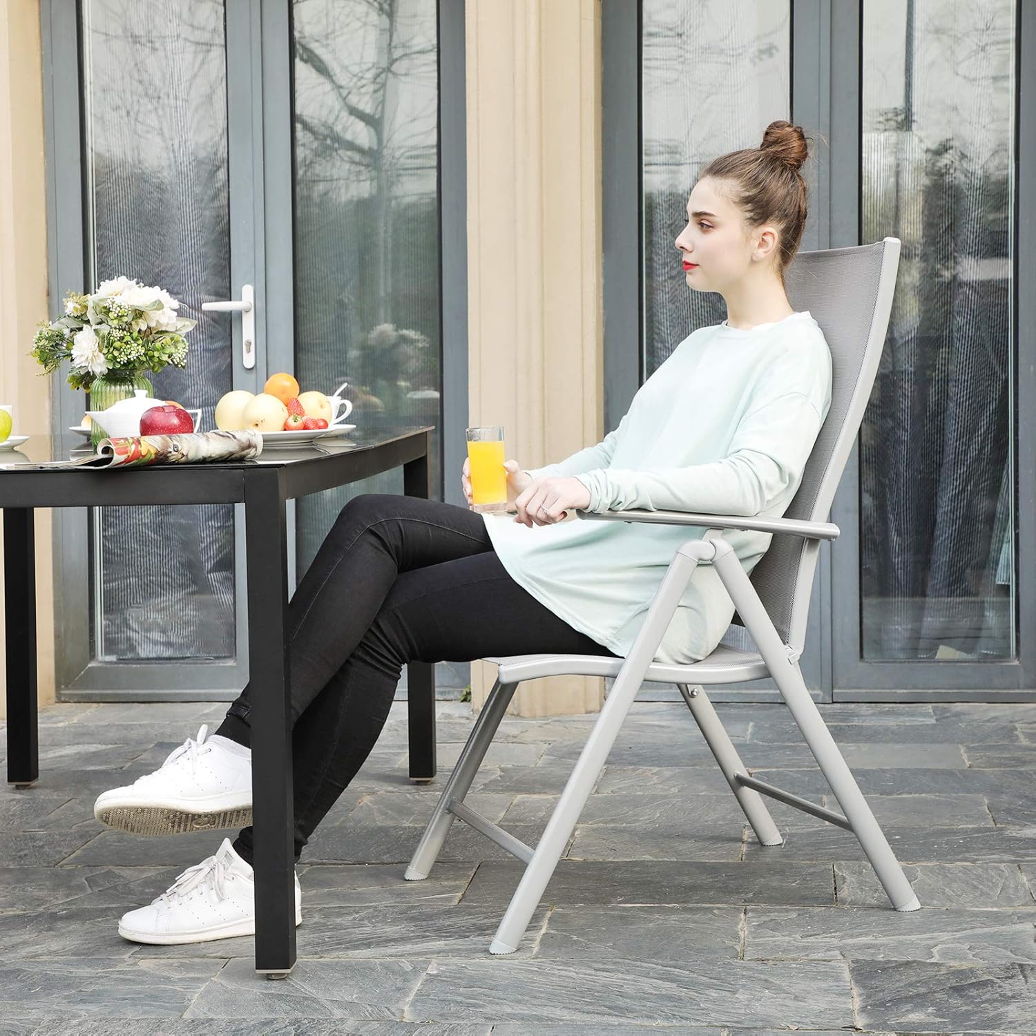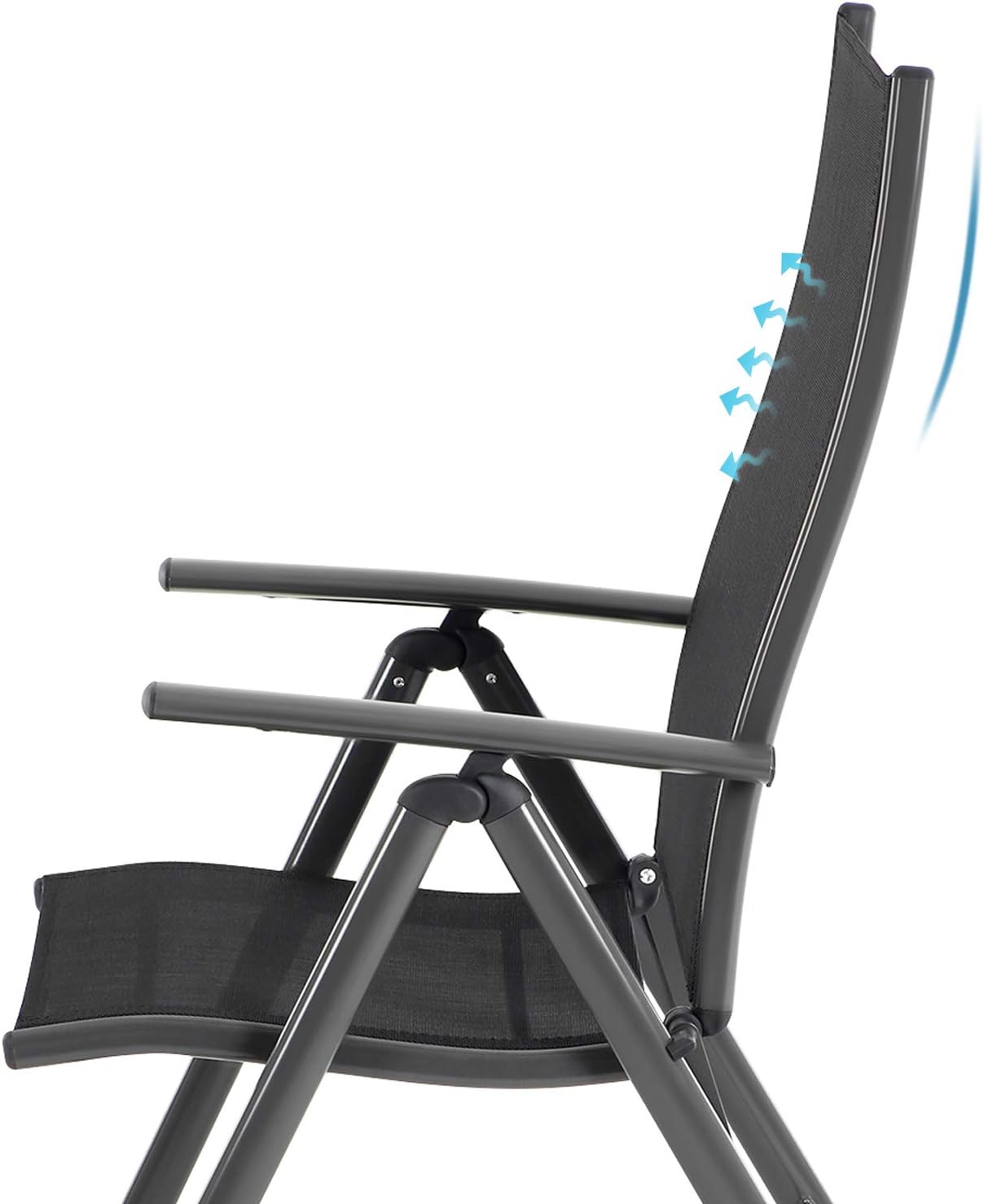 SONGMICS Set di 2 Sedie da Giardino Pieghevoli Schienale Reclinabile a 8 Angoli Grigio GCB03GYV1 Max Portata 150 kg Sedia da Esterno con Struttura in Ferro Resistente