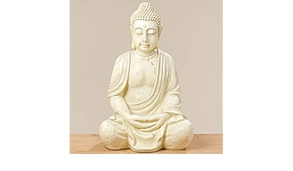 Dafloxx Delicato Buddha 70cm in Beige Aus Magnesia Figura Bianco Modello Monaco Bianco