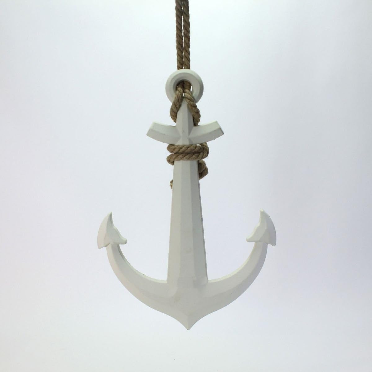 VOSS Ancoraggio con Tau Bianco Shabby Chic Decorativo Ancora in Legno Grande 40 x 58 cm