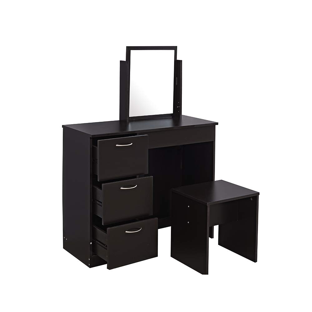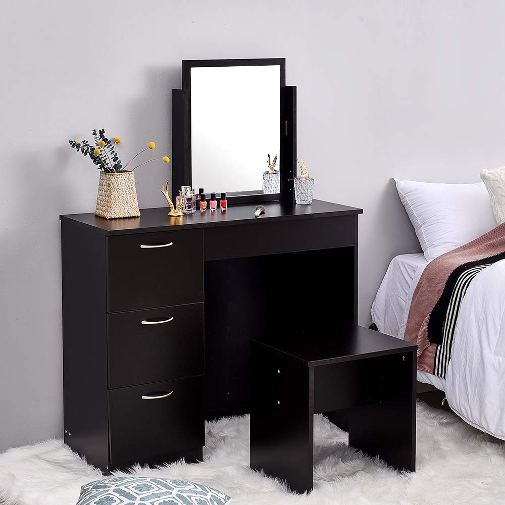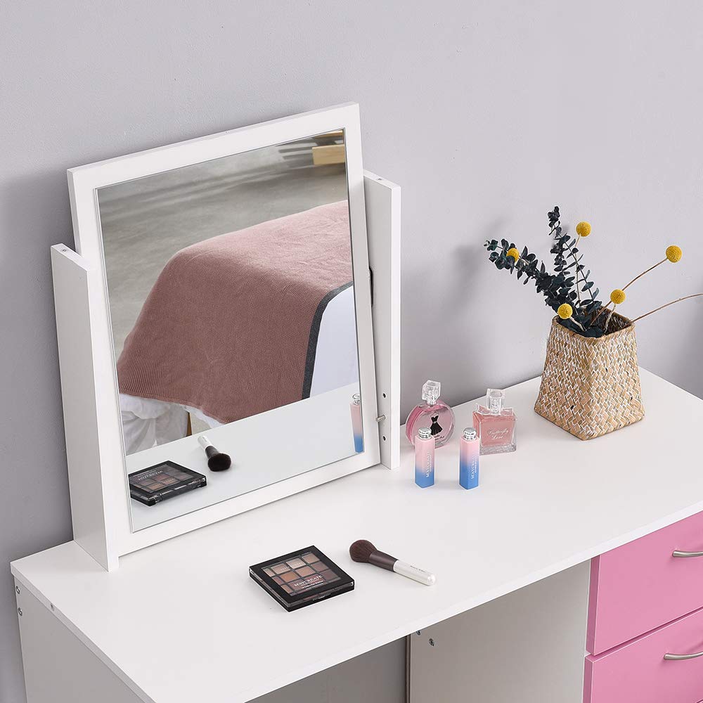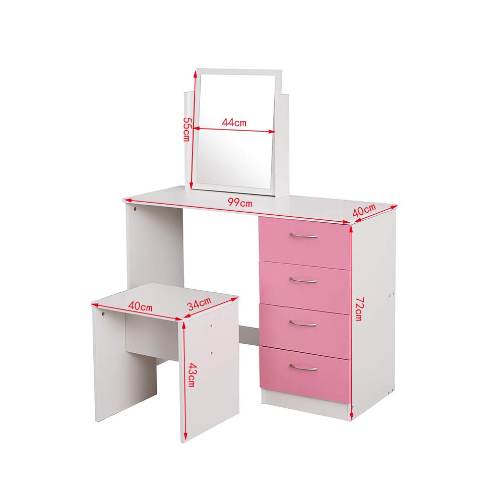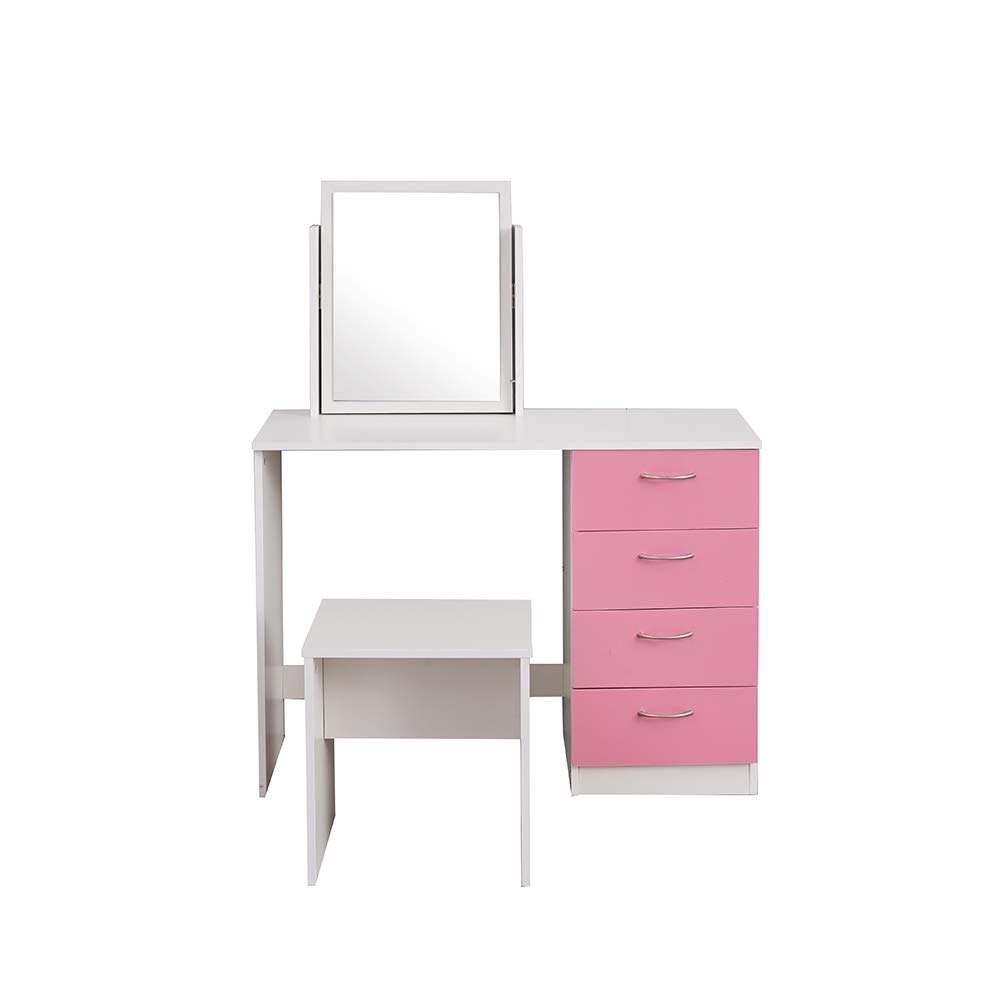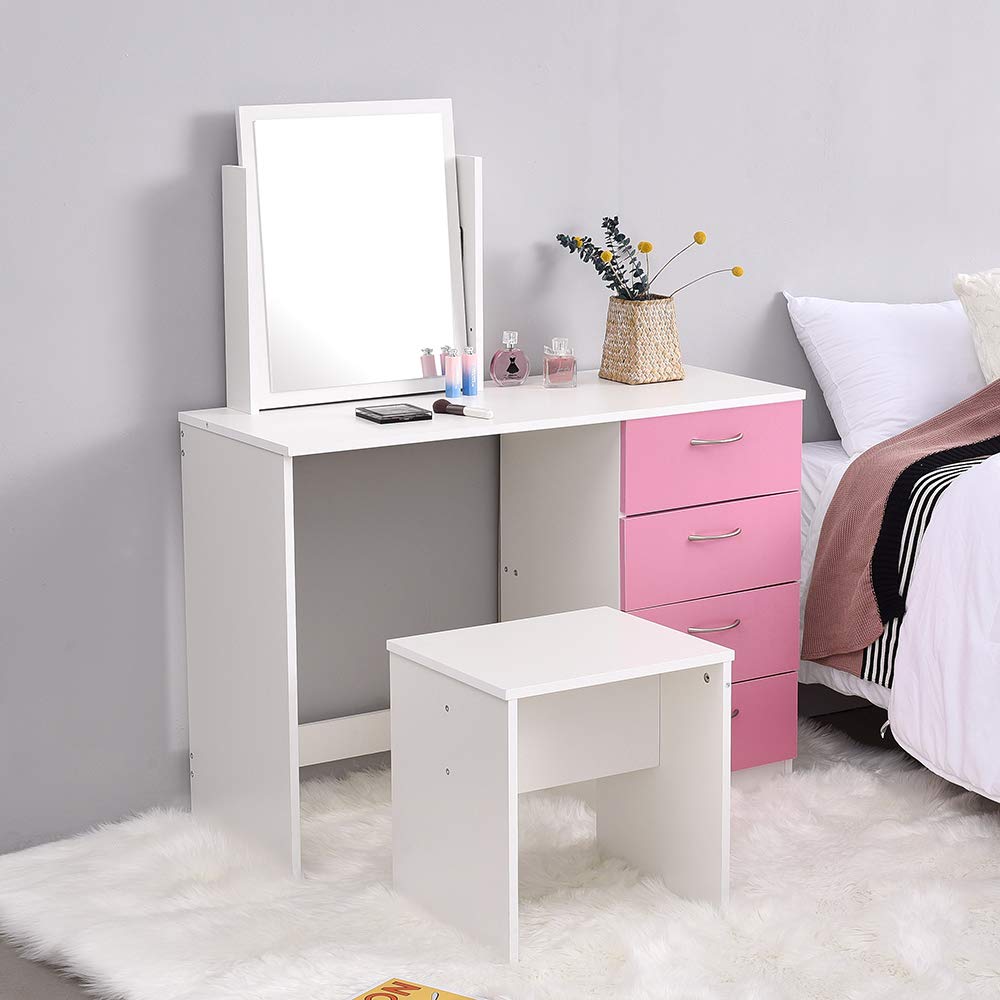 Comodino Saiyun Vanity Tavolo per Computer Rosa Pannello in MDF Set da toeletta per Camera da Letto Tavolino da toeletta con Sgabello e Specchio per Trucco Medium Tavolo da Trucco