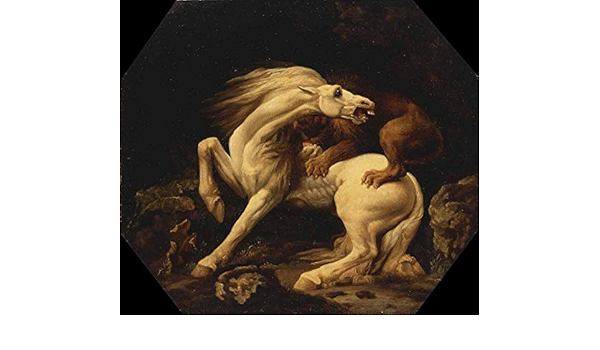 Un Leone Attaccare Un Cavallo Riproduzioni Quadro Stampa su Tela Arrotolata 60X45 cm JH Lacrocon George Stubbs Dipinti Animali Decorazione Parete
