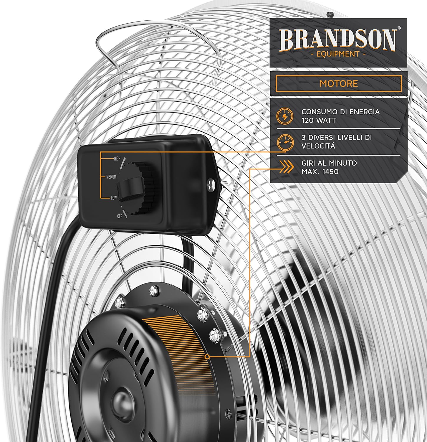 LOriginale Super Ventilatore Ventilatore da 45cm Cromo Brandson 120W di Potenza Max assorbita Design Retro Macchina del Vento 3-Livelli di Potenza
