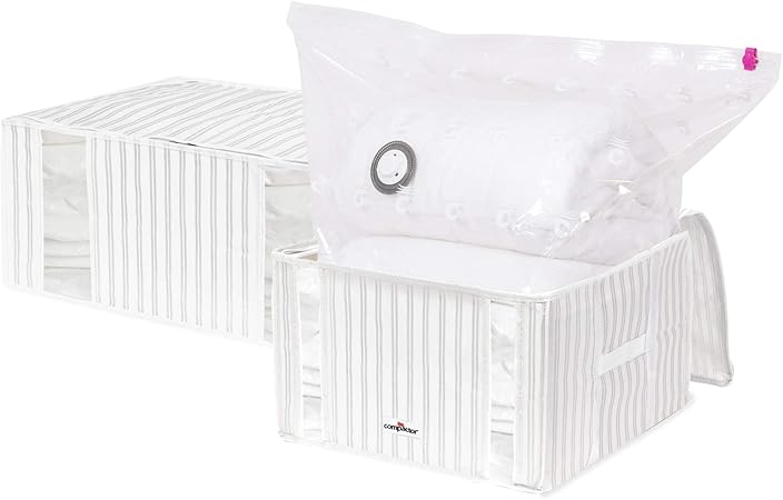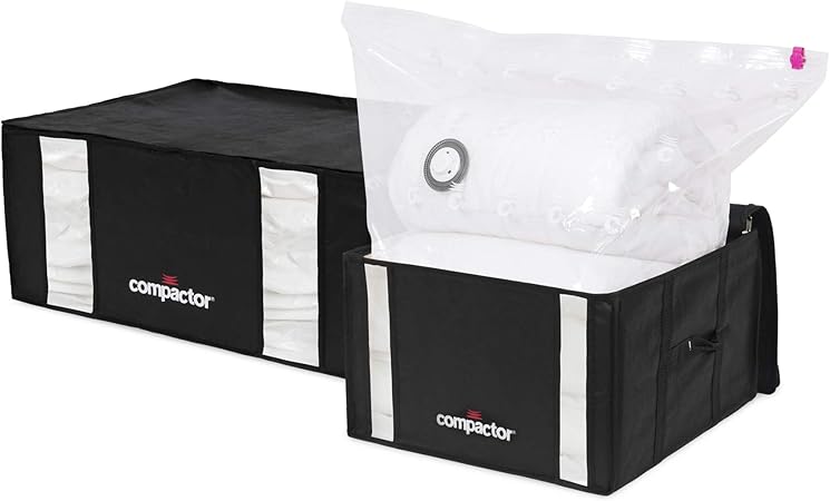 240 x 220 cm, Capacità: 2 piumoni matrimoniali standard, Bianco "Life", Materiale: Custodia esterna: fibra non tessuta 100% polipropilene. Bianco "Life", Dimensioni Formato XXL, piumoni e biancheria per la casa per un lungo periodo di tempo, Chiusura lampo ermetica con cursore scorrevole incluso, : 65 X 50 X 27 cm, Finestrelle: EVA, pronto all’uso, Custodia con sacco salvaspazio sottovuoto per guadagnare fino al 75% di spazio in più nei vostri armadi – Ideale per riporre vestiti, RAN8821, Sacco salvaspazio interno fissato alla custodia, Facile e veloce da usare: Valvola 100% ermetica compatibile con tutti i tipi di aspirapolvere, Cartone 100% sostenibile con certificazione FSC, minimo 400W, COMPACTOR Set 5 Custodie con Sacco Salvaspazio Sottovuoto, Custodia con sacco salvaspazio sottovuoto per guadagnare fino al 75% di spazio in più nei vostri armadi – Ideale per riporre vestiti. Sacco salvaspazio interno: polietilene e nylon ad alta resistenza, lxLxH, Sacco salvaspazio interno fissato alla custodia, Maniglie rinforzate, 210L, : 65 X 50 X 27 cm, Maniglie rinforzate, Finestrelle: EVA, Cartone 100% sostenibile con certificazione FSC, pronto all’uso; Protezione delle fibre tessili: Antipolvere, Pratico: Finestrelle in EVA per identificare il contenuto, Valvola e cursore di chiusura inclusi. Formato XXL, 240 x 220 cm, Nessuna perdita di volume dei capi compressi; Contenuto: 1x COMPACTOR Set 5 Custodie con Sacco Salvaspazio Sottovuoto tutto-in-uno con: Scatola, Almeno 125 utilizzi senza alterazioni, lxLxH, COMPACTOR Set 5 Custodie con Sacco Salvaspazio Sottovuoto, Zip: polietilene, RAN8821: Casa e cucina, anti-acari e anti-umidità, Bianco 'Life', Zip: polietilene, Almeno 125 utilizzi senza alterazioni. Rinforzi interni, Nessuna perdita di volume dei capi compressi. + 2 cuscini per custodia, 210L, RAN8821: Casa e cucina, 210L, Compactor Formato XXL, Chiusura lampo ermetica con cursore scorrevole incluso; Pratico: Finestrelle in EVA per identificare il contenuto. Capacità: 2 piumoni matrimoniali standard, Formato XXL, Rinforzi interni, + 2 cuscini per custodia; Facile e veloce da usare: Valvola 100% ermetica compatibile con tutti i tipi di aspirapolvere, piumoni e biancheria per la casa per un lungo periodo di tempo. Sacco salvaspazio interno fissato alla custodia, Sostegno perfetto grazie a cinghie e rinforzi interni – Nessun montaggio. minimo 400W, Formato XXL, Materiale: Custodia esterna: fibra non tessuta 100% polipropilene, RAN8821, Contenuto: 1x COMPACTOR Set 5 Custodie con Sacco Salvaspazio Sottovuoto tutto-in-uno con: Scatola, anti-acari e anti-umidità, Bianco "Life", Sostegno perfetto grazie a cinghie e rinforzi interni – Nessun montaggio. Valvola e cursore di chiusura inclusi. Dimensioni Formato XXL, Sacco salvaspazio interno fissato alla custodia, Protezione delle fibre tessili: Antipolvere. Sacco salvaspazio interno: polietilene e nylon ad alta resistenza. 210L.