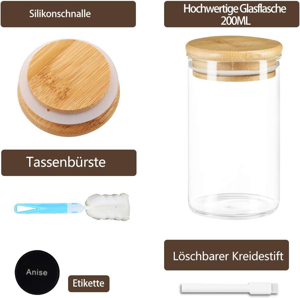 Set di 12 barattoli in vetro borosilicato con coperchio capacità 200 ml MEckily