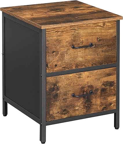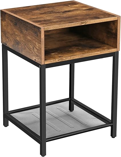 VASAGLE Tavolino Comodino con 1 Cassetto e 1 Scomparto Aperto Soggiorno Industriale 45 x 45 x 55 cm Struttura in Acciaio Marrone Vintage e Nero LET058B01 per Camera da Letto