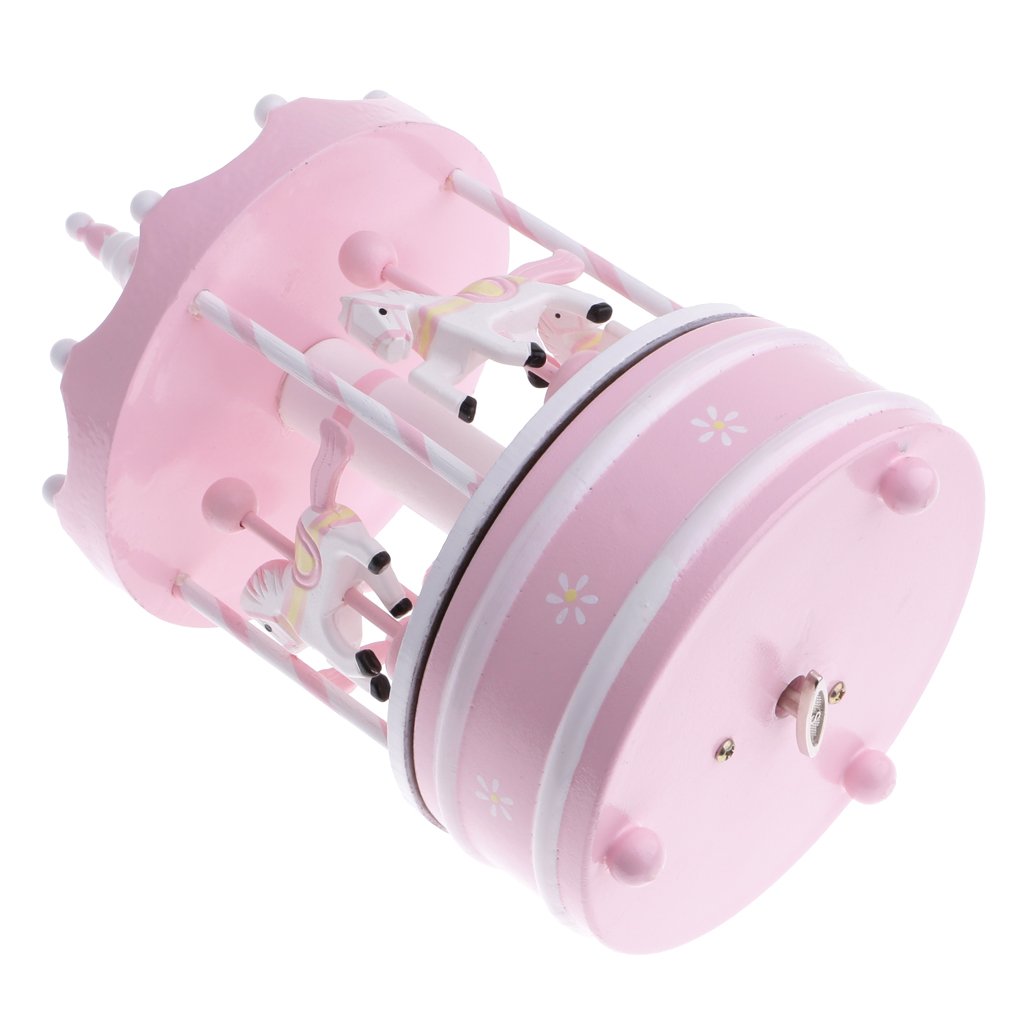 Rosa Carosello Carillon con Cavallo Set di Ornamenti di Movimento in Plastica in Legno Regalo di Casa di Natale Ideale per Bambina Ragazzo