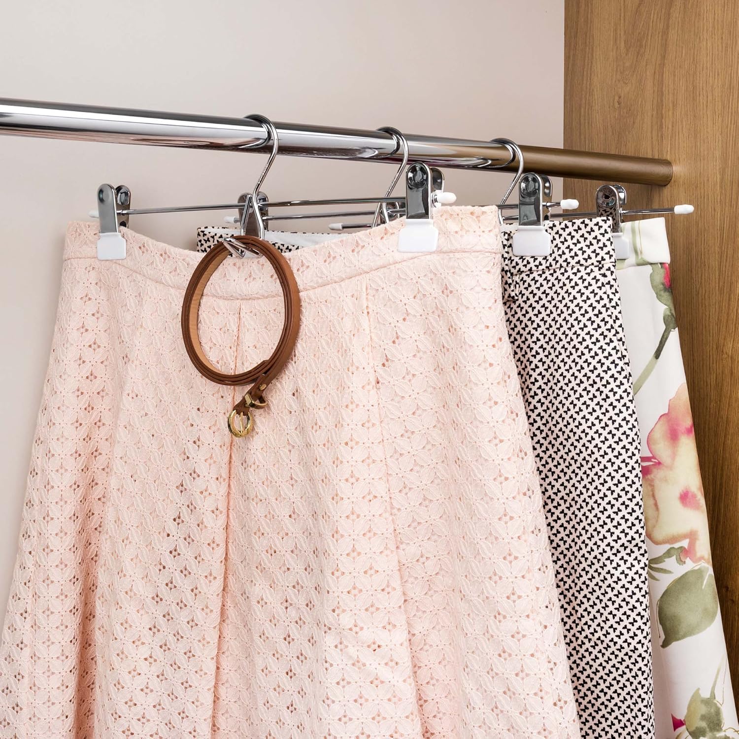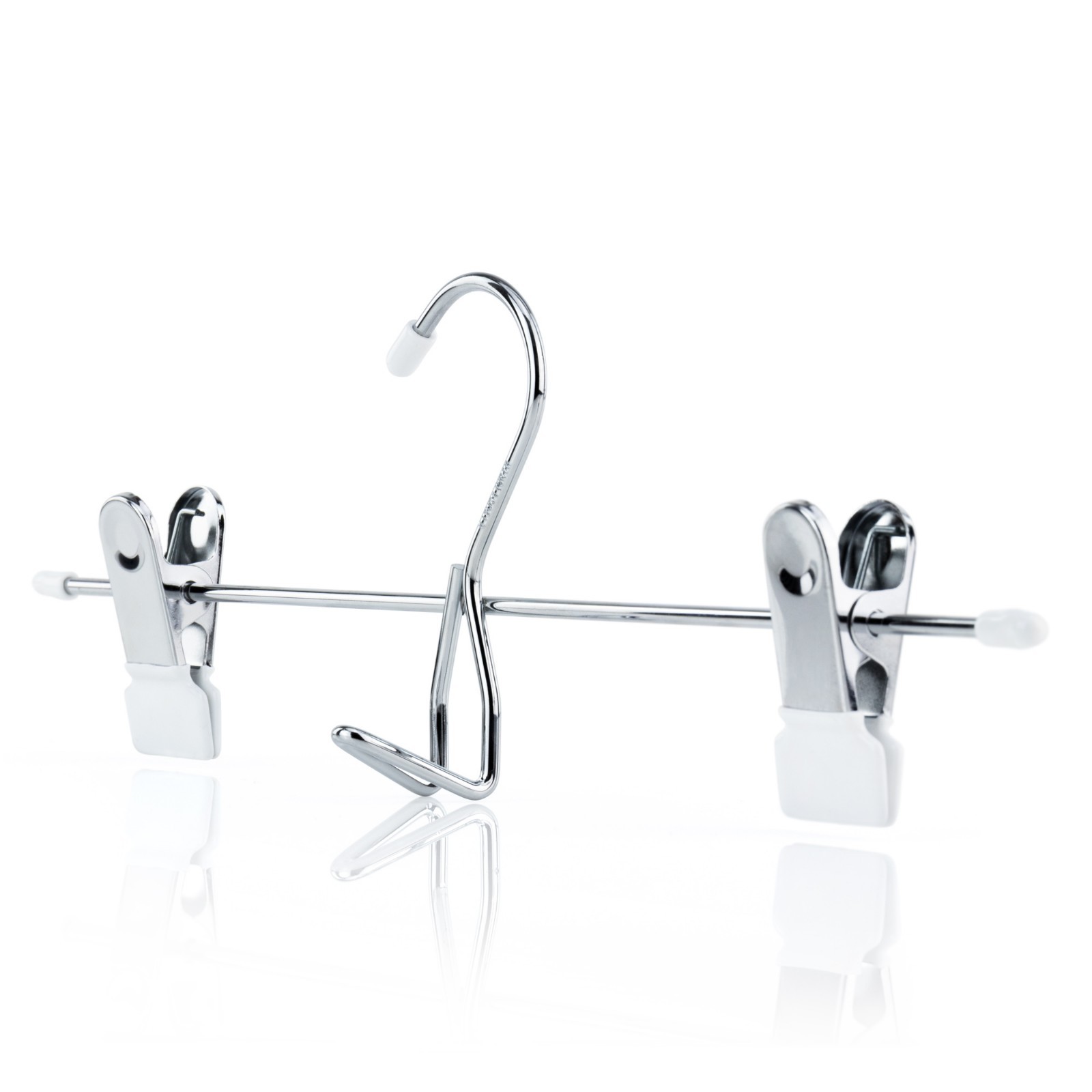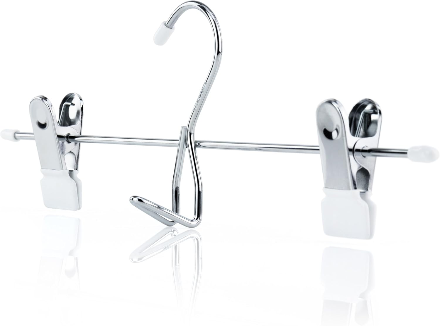 HANGERWORLD 48 Grucce con Pinze 34cm in Metallo Cromato e Gommino Antiscivolo Bianco e Gancio Portacinture