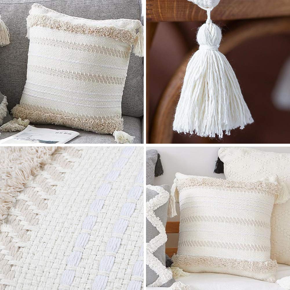 lavorato a maglia decorazione per casa divano sedia letto sofà soggiorno Cotone Beige 30cmx50cm in tinta unita beige Moderno copricuscino ornato con ciuffi e nappe,motivo geometrico