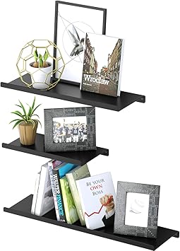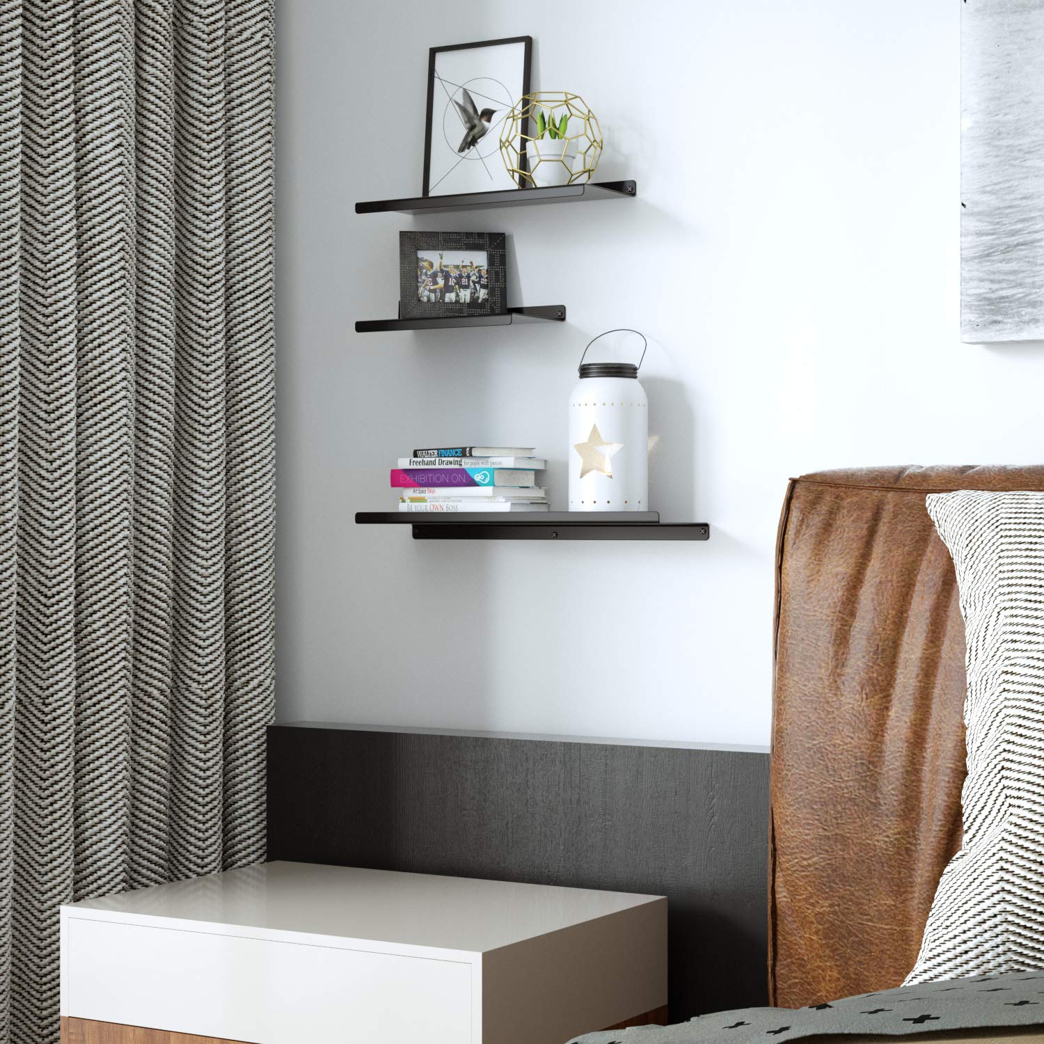 SRIWATANA salvaspazio Set di 3 mensole sospese in Metallo Colore: Nero per sostenere Fino a 15 kg da Parete