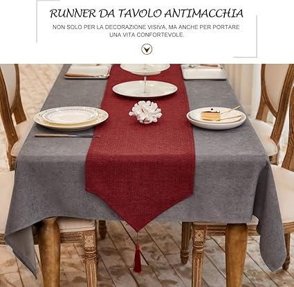per casa antimacchia feste di Natale colore: Beige 35 x 180 cm ristoranti moderno Runner da tavolo impermeabile Balcon & Falcon per mobili con pompon