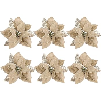 fiori finti con glitter Amajoy 12 pezzi fiori ornamentali per Natale o per matrimoni 14 cm Gold