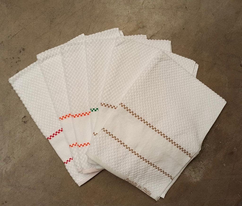 Set Sei Strofinacci in Spugna con Tela Aida e Bordino colorato Misura 50 x 70 Circa 2 Tortora, 1rosso,1 Verde, 2 Arancio