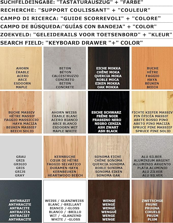 estraibili per tastiera mouse e laptop staffa per binario scorrevole zincato 300mm FIX&EASY Guide scorrevoli con ripiano 600X300mm texture dekoro legno faggio per porta-tastiera cassetto