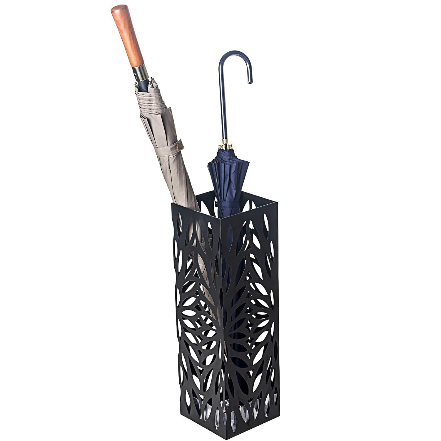 tondo Display4top Portaombrelli,Porta ombrelli in metallo per gocciolamento decorazione ufficio domestico con 4 ganci neri e vassoio antigoccia,Nero