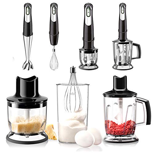500ml Chopper Frullino per Uova 600ml Becher Frullatore AEVOBAS Frullatore a Immersione 1000W Robot da Cucina 5 in 1 con Velocità Infinitamente Variabile Frullatore Immersione Schiacciapatate