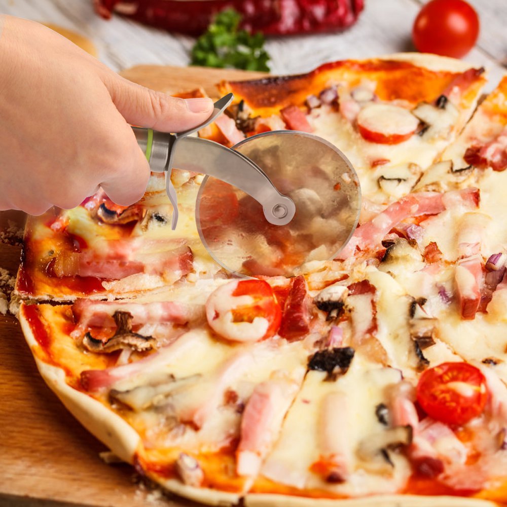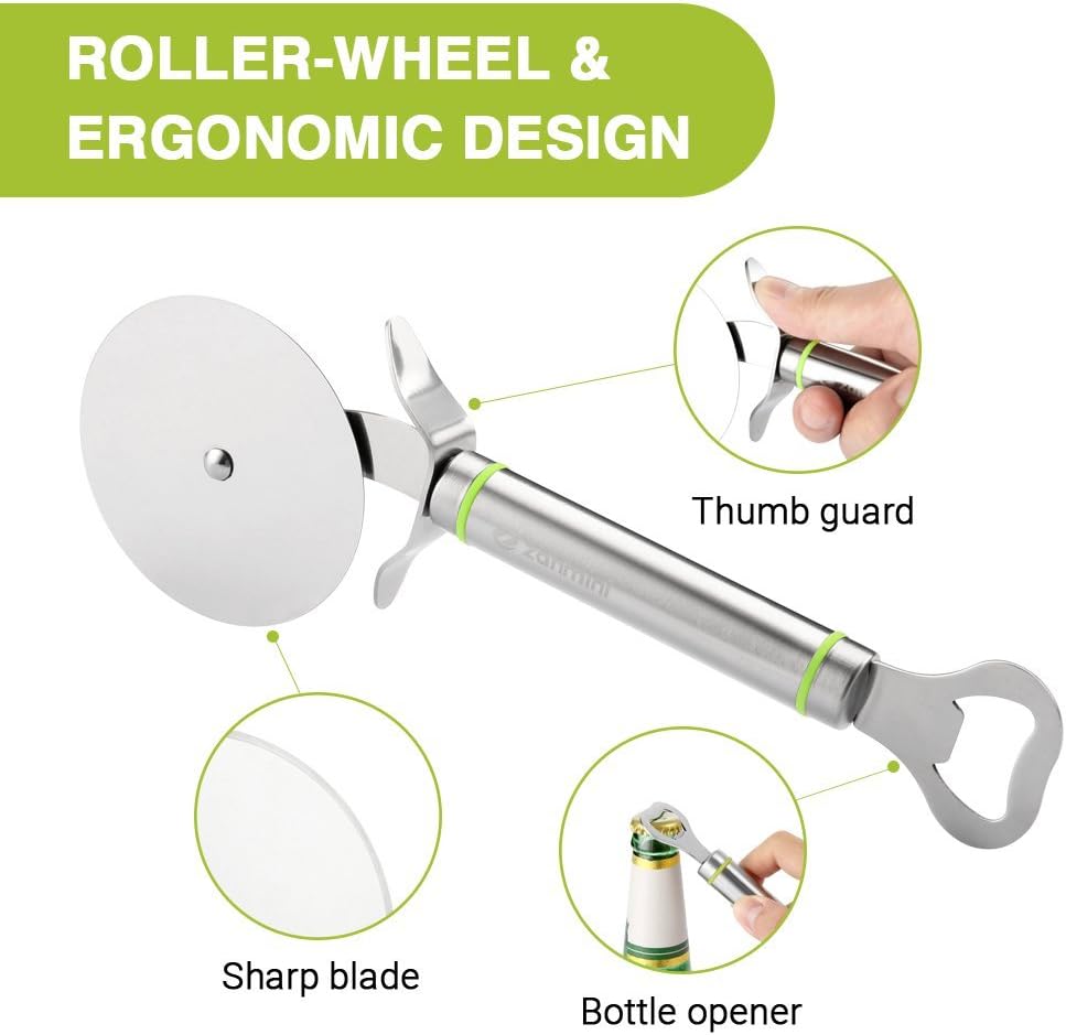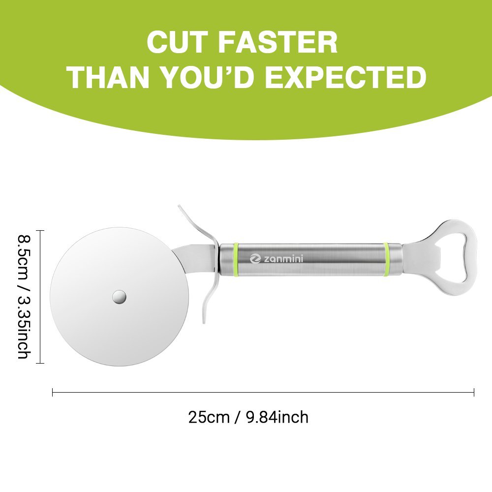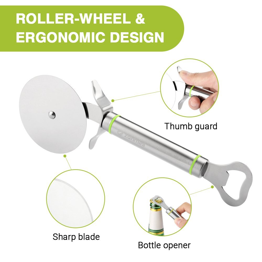 waffle e biscotti per pasta rotella per pizza con apribottiglie coltello per pizza in acciaio inox impugnatura ergonomica antiscivolo- ideale per pizza argento Zanmini Rotella Tagliapizza torte