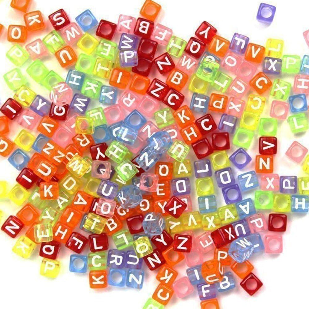 traslucide Tesan in plastica acrilica in colori assortiti confezione da 800 perline in 4 diversi stili cubiche per realizzare gioielli con lettere dellalfabeto