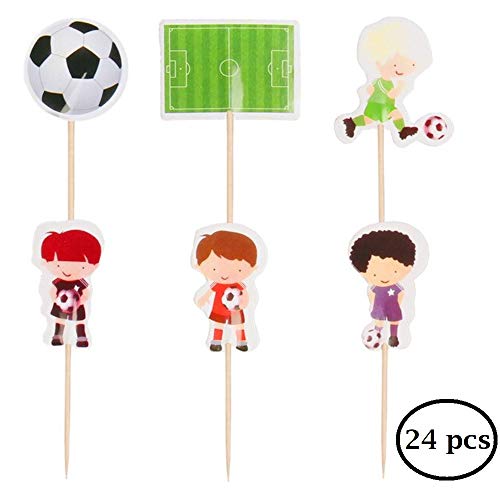 Set di 24 topper per cupcake a forma di pallone da calcio decorazioni per torte sportive e feste di calcio JeVenis